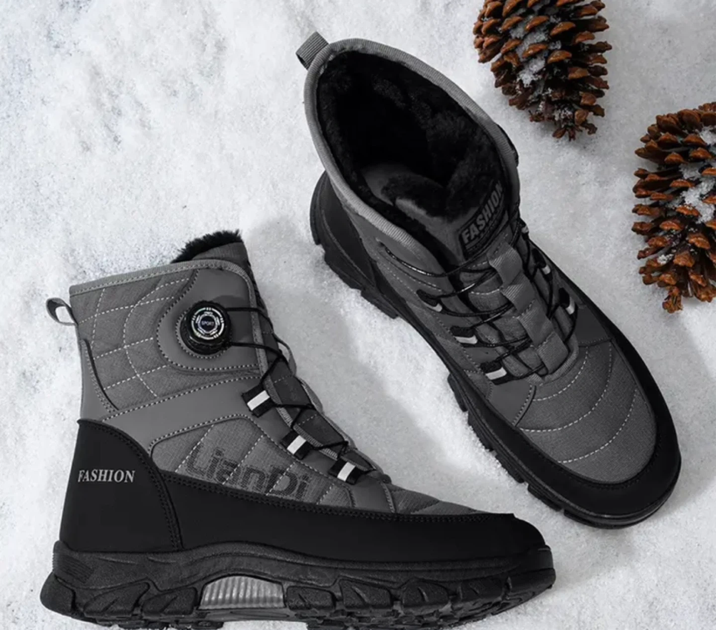 Mainalun Gray Winter Snow Boots