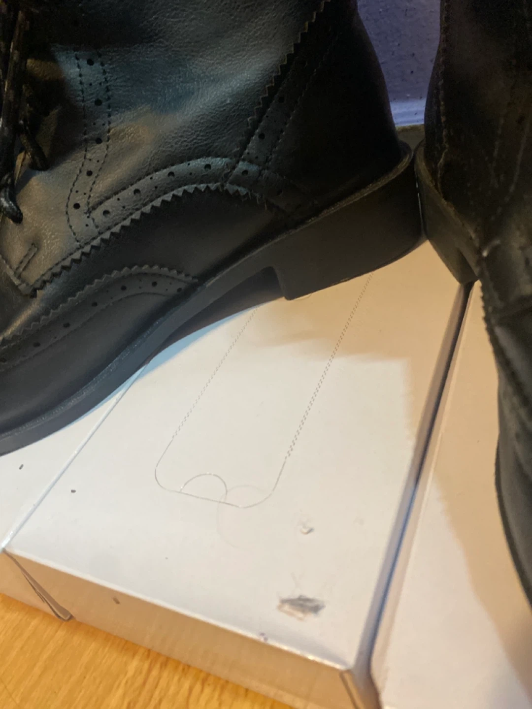 Selling a pair of black lace-up boots. They show some signs of wear, but still have lots of life left in them. Perfect for adding a bit of edge to your outfit!