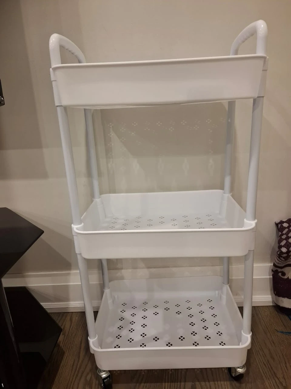 Selling a handy 3-tier utility cart! It's perfect for adding extra storage in any room. The cart is white and in great condition. It comes with the original box too!