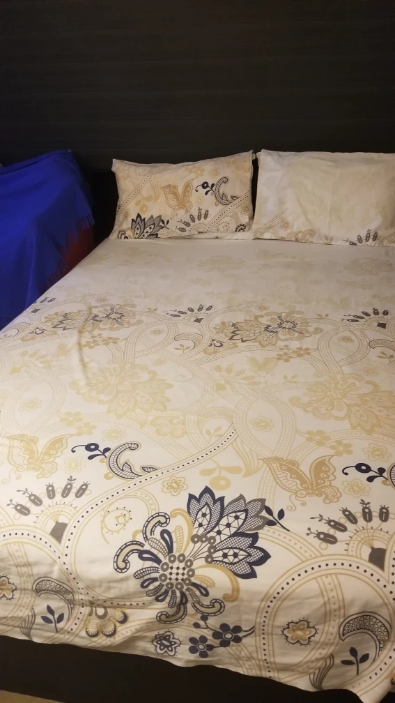 This is a custom made bedsheet from a single fabric roll please notice that the design on pillowcase differ and pen mark on sheet can be seen in picture