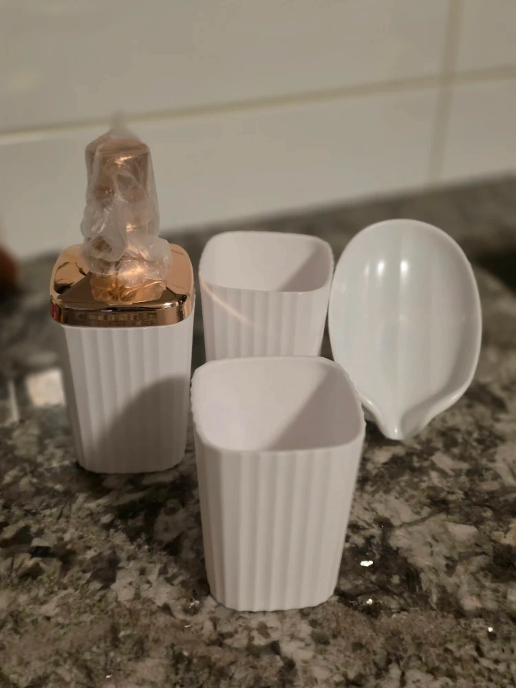 Stylish white plastic bathroom set, perfect for organizing your sink area. Includes: