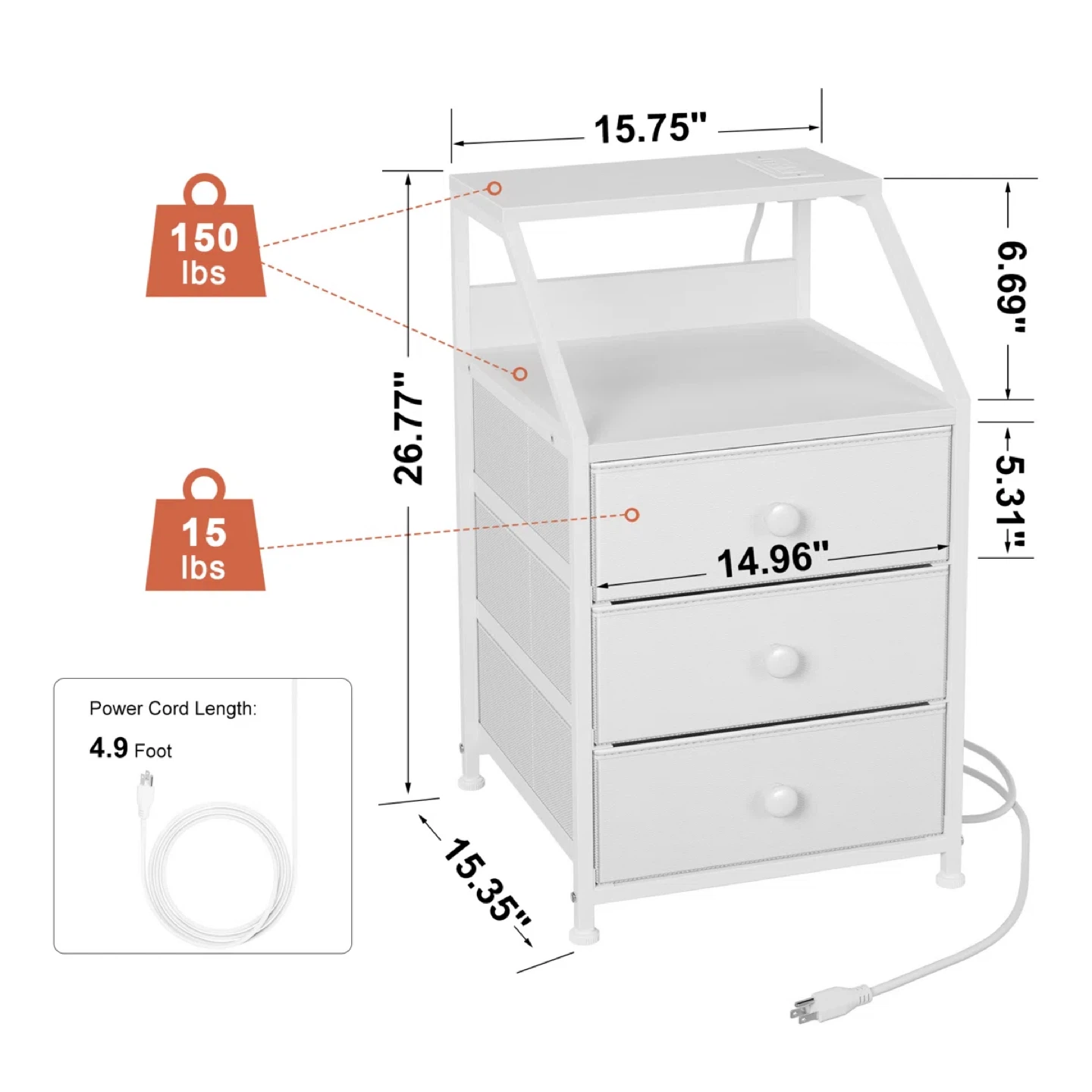 Bedside End Tables - Set of 2, built-in charging & drawers