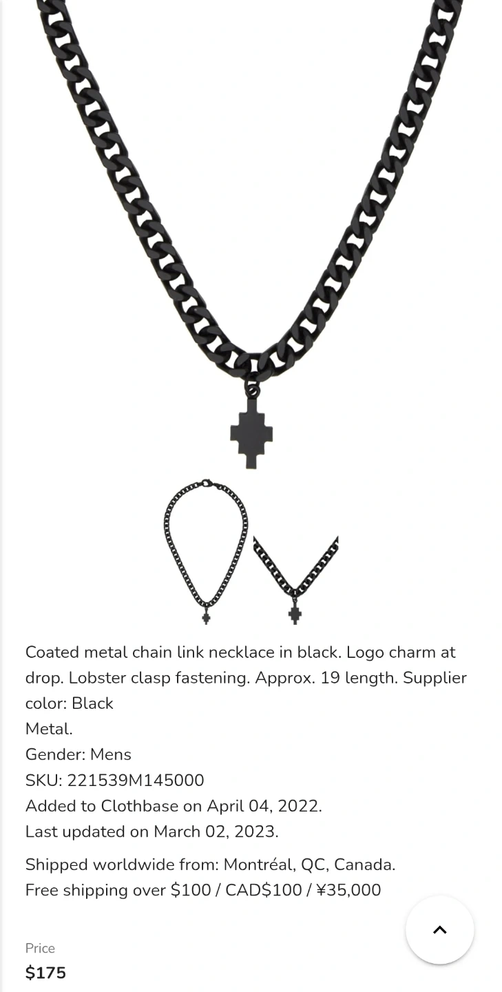 This stylish necklace features a chunky curb chain design with a small, iconic Marcelo Burlon pendant (looks like a cross or puzzle piece). It comes with the original white drawstring dust bag printed with the "MARCELO BURLON COUNTY OF MILAN" logo.