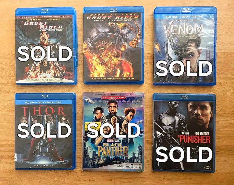 All movies are gently used, cases intact, and all disks are in mint working condition with no scratches.