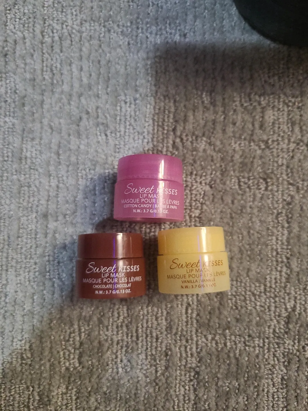 Selling a set of three Kozmic Colours Sweet Kisses lip masks! Flavours include Cotton Candy, Chocolate, and Vanilla