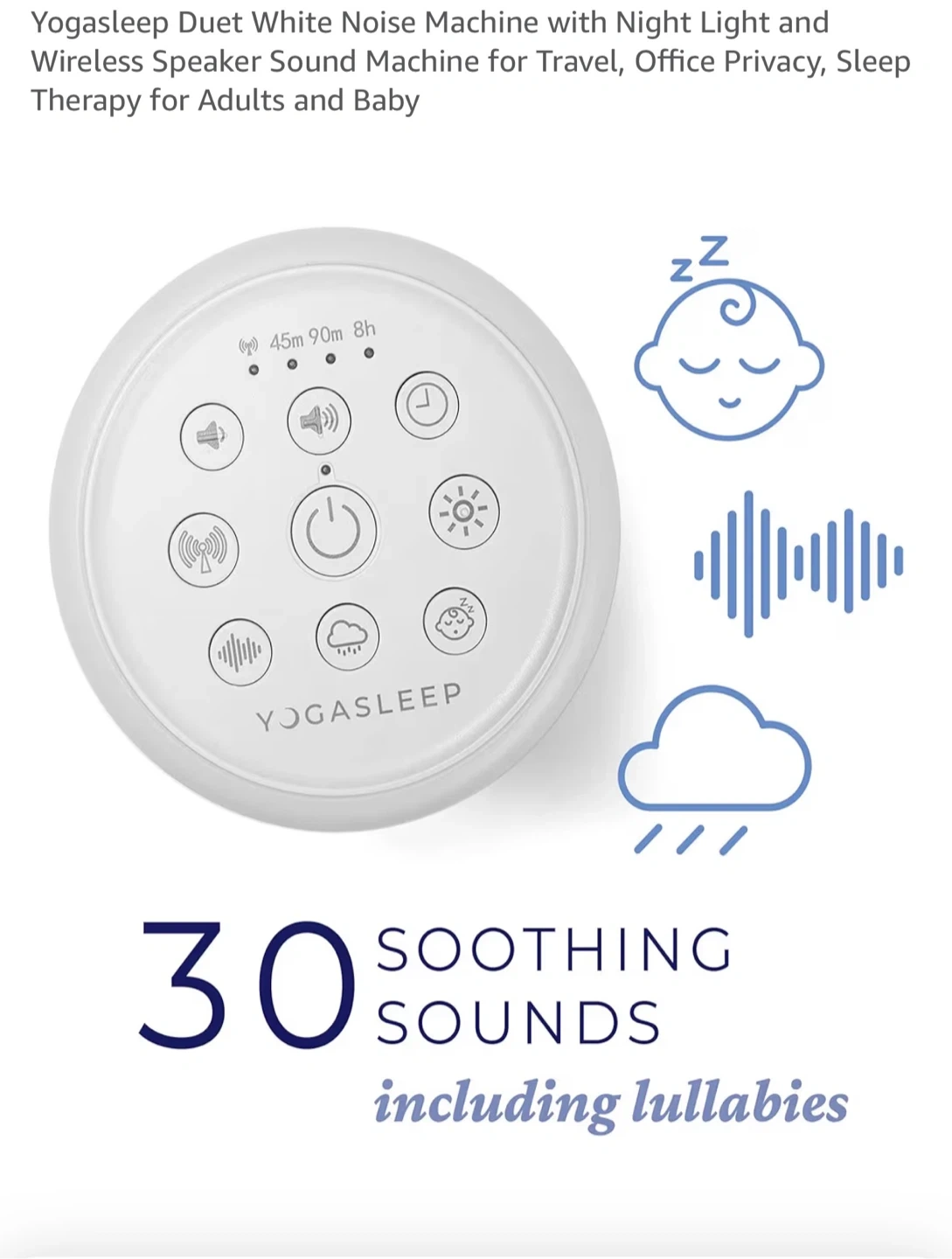 Selling a Yogasleep Duet white noise machine! It comes with a USB cable and features 30 soothing sounds including lullabies.