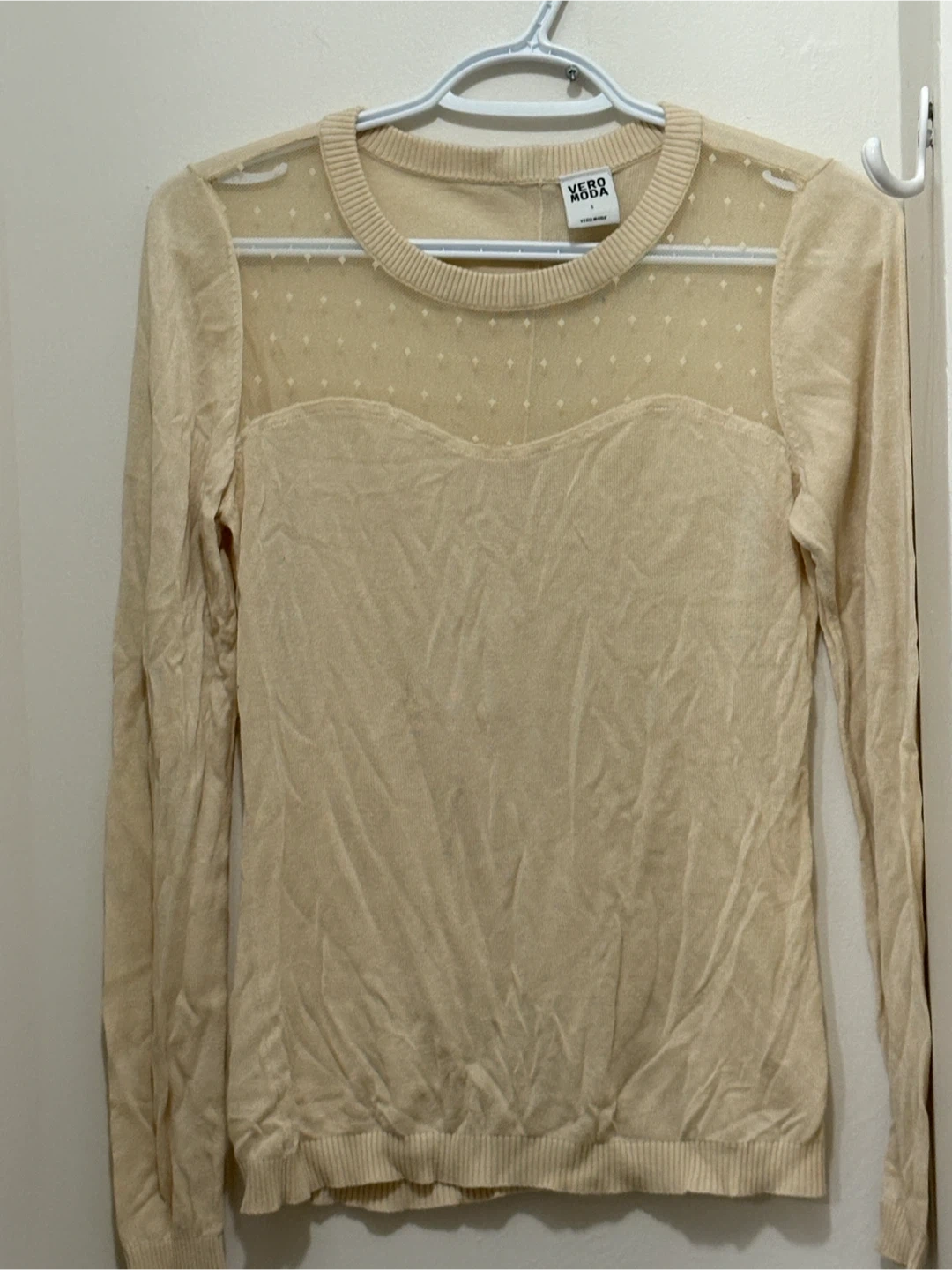 Here's a cute Vero Moda long sleeve top in a lovely beige colour! It's a size small and in great condition. Perfect for layering or wearing on its own!