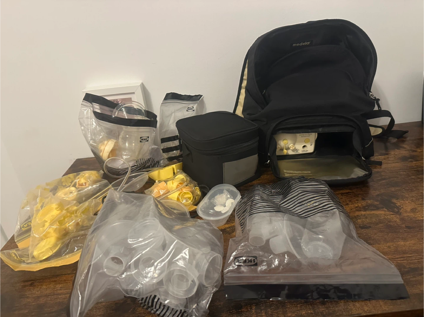 Selling a collection of Medela breast pump parts and accessories. Includes various sizes of flanges, bottles, connectors, and other essential components. Great for anyone needing replacement parts or extras for their Medela breast pump!