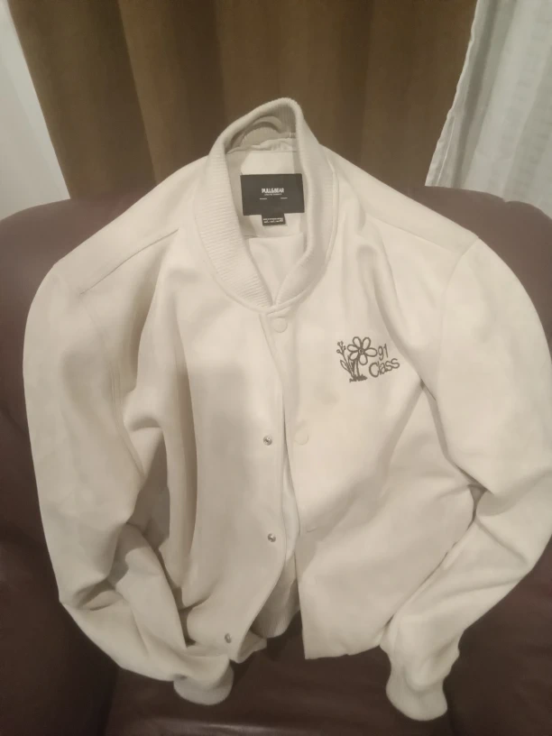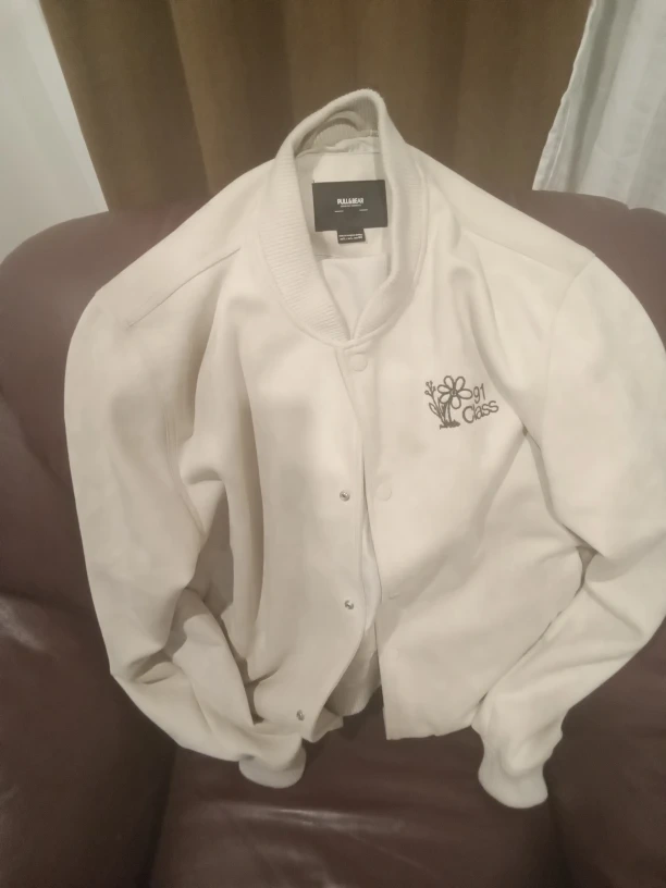 Here's a Pull&Bear bomber jacket in size L! It's a stylish and comfortable piece. Perfect for layering during those in-between weather days