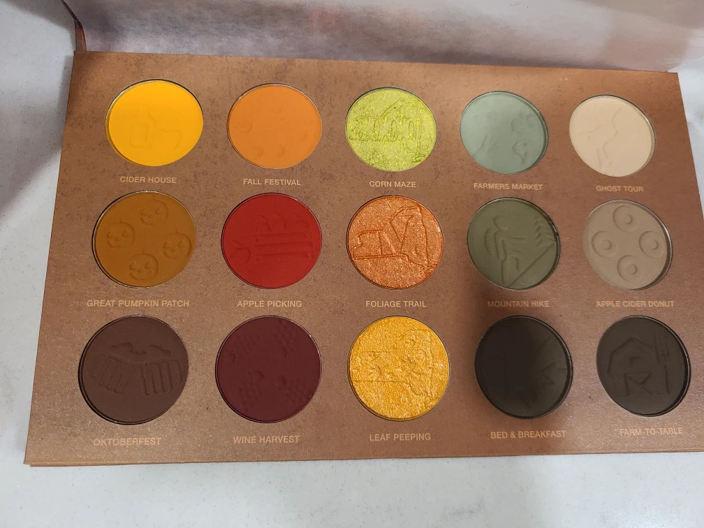 Nomad Cosmetics Hudson Valley Intense Color Palette! The palette features a range of fall-themed shades, perfect for creating warm and inviting eye looks. Each shade is inspired by the foliage trail in Hudson Valley, NY. A proud supporter of Scenic Hudson! Net WT 15 x 0.05 oz / 1.5g