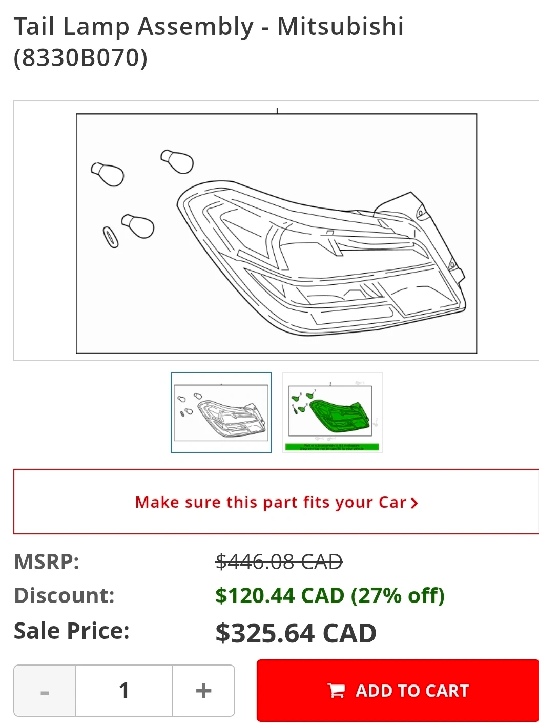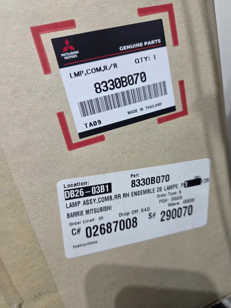 Selling a Mitsubishi Tail Lamp Assembly, part number 8330B070. It's in great condition and comes in the original box. The box includes instructions. The MSRP is $446.08 CAD, but it's on sale for $325.64 CAD. This is a genuine Mitsubishi part! 150$