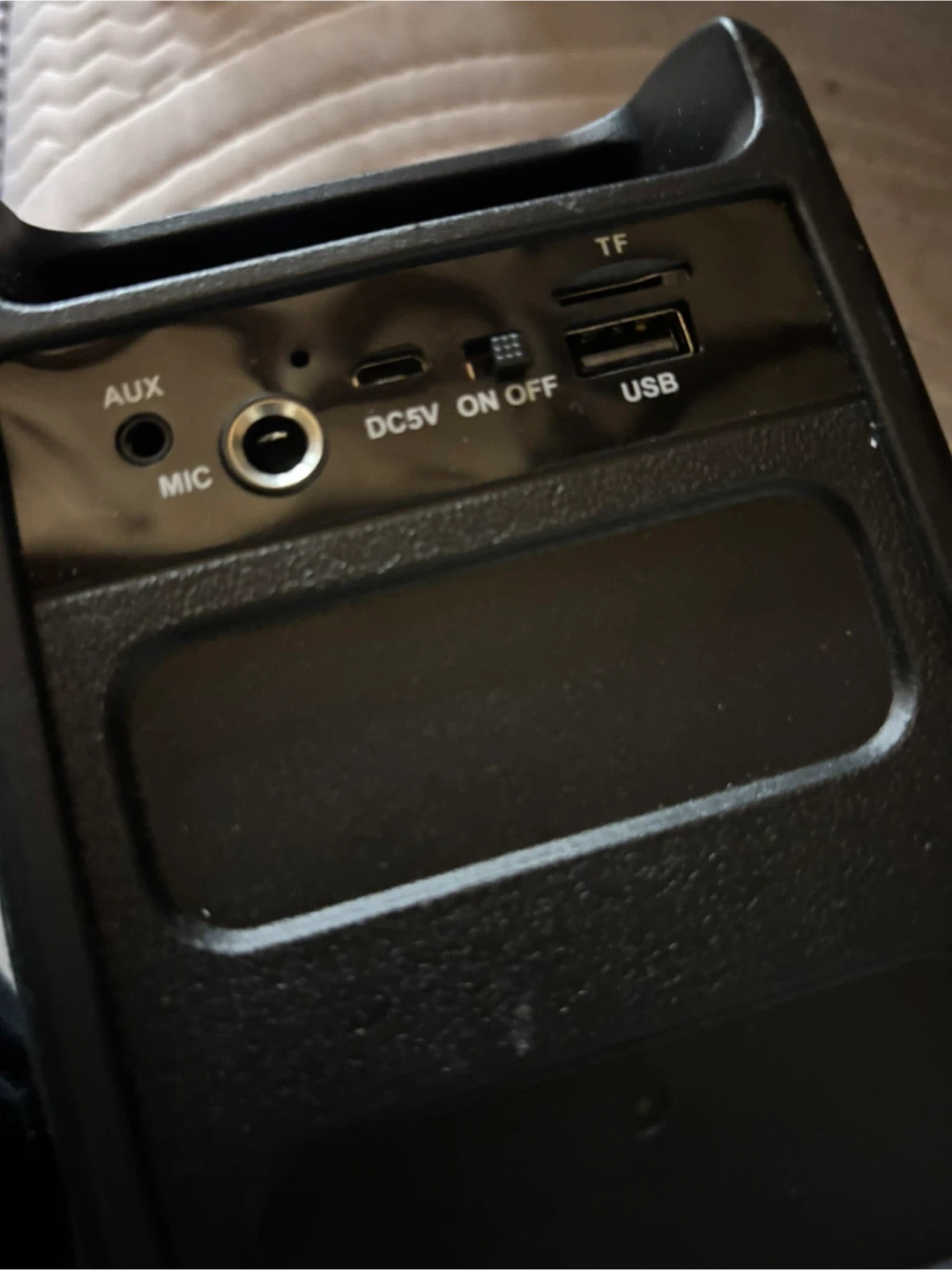 Selling a Proscan portable Bluetooth speaker. It features colourful lights and has ports for AUX, mic, USB, and TF card