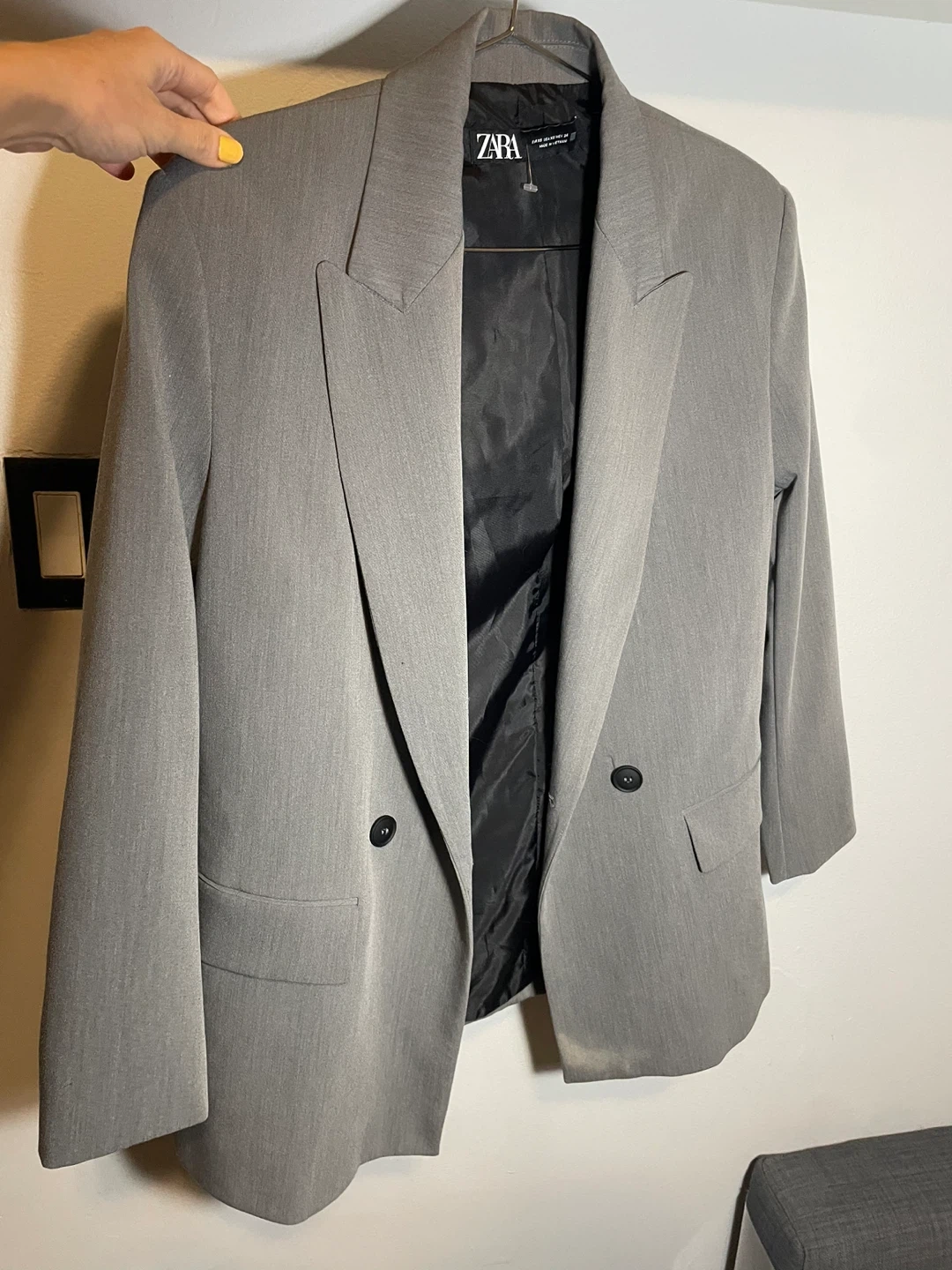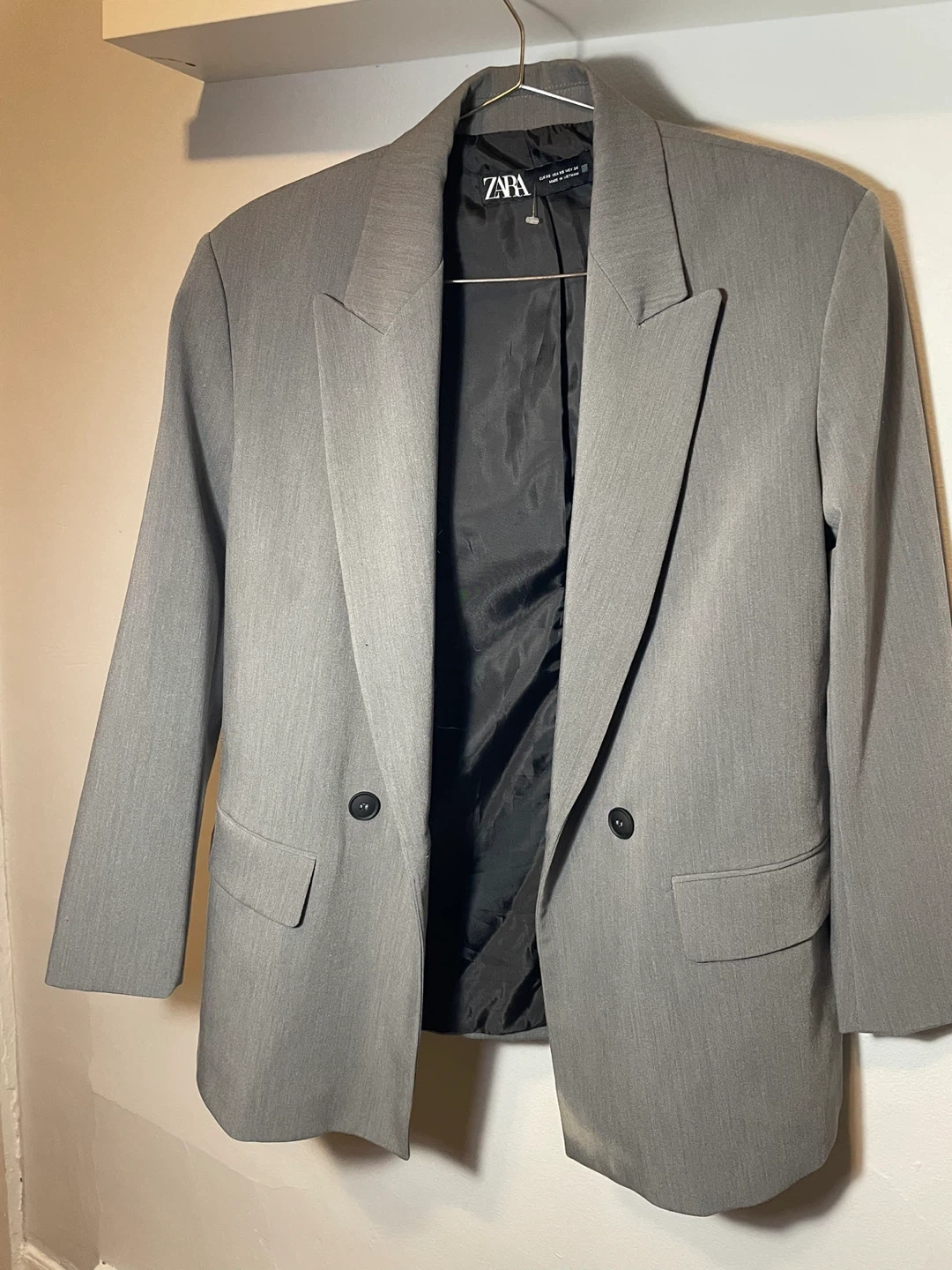 Selling a Zara blazer in a lovely grey colour! It's a size XS and in great condition. Perfect for adding a touch of style to any outfit