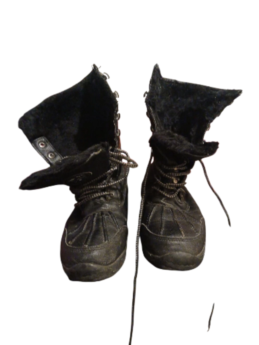 Am giving away a pair of black winter boots. They show some signs of wear but are still in good condition for keeping your feet warm and dry during the winter months to anyone in need giving it as it is no delivery pickup only
