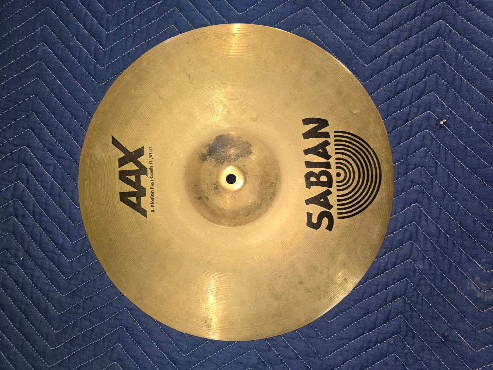 Selling a Sabian AAX X-Plosion Fast Crash cymbal, size 17". It has a bright and explosive sound with a fast response, making it versatile for different music styles.