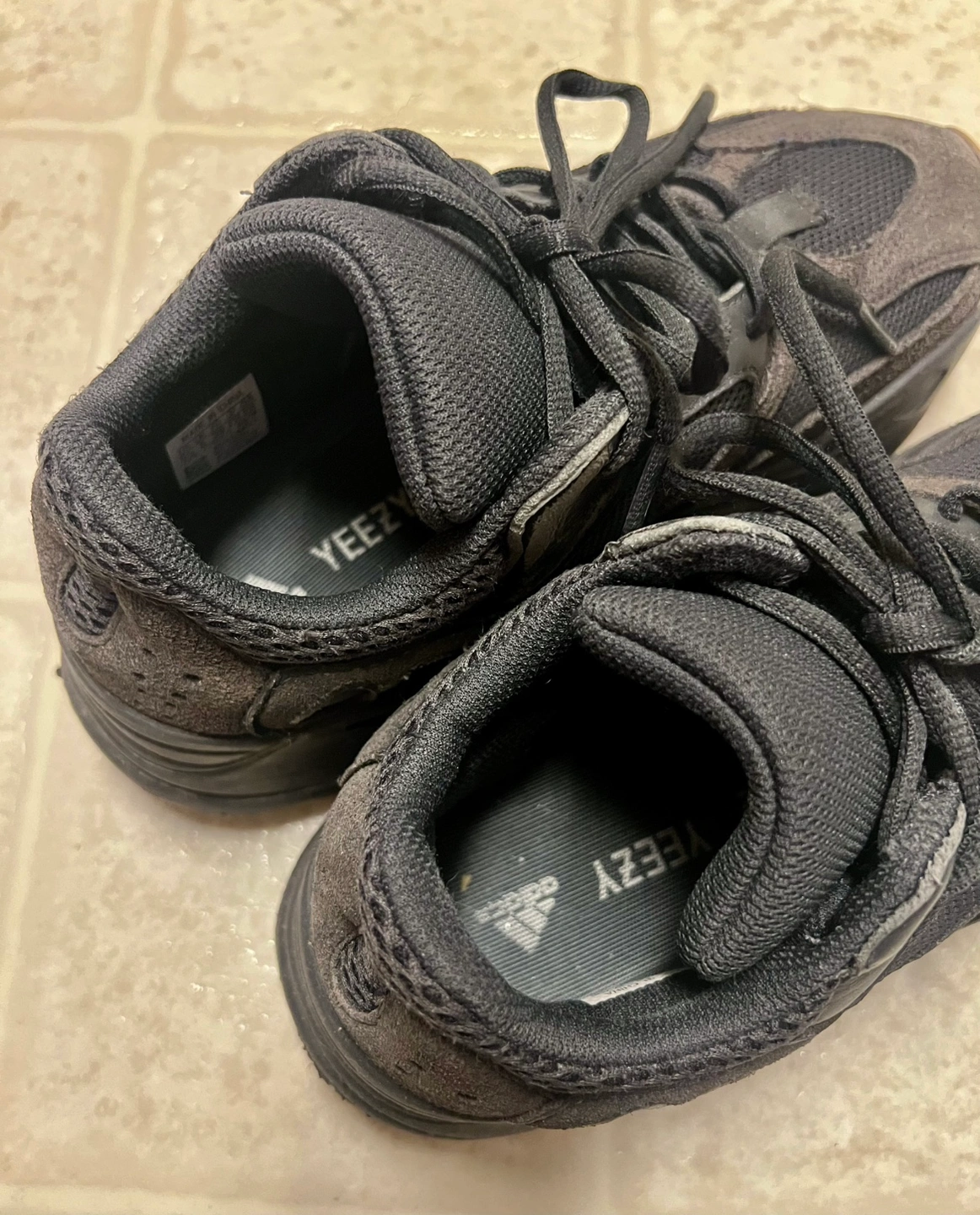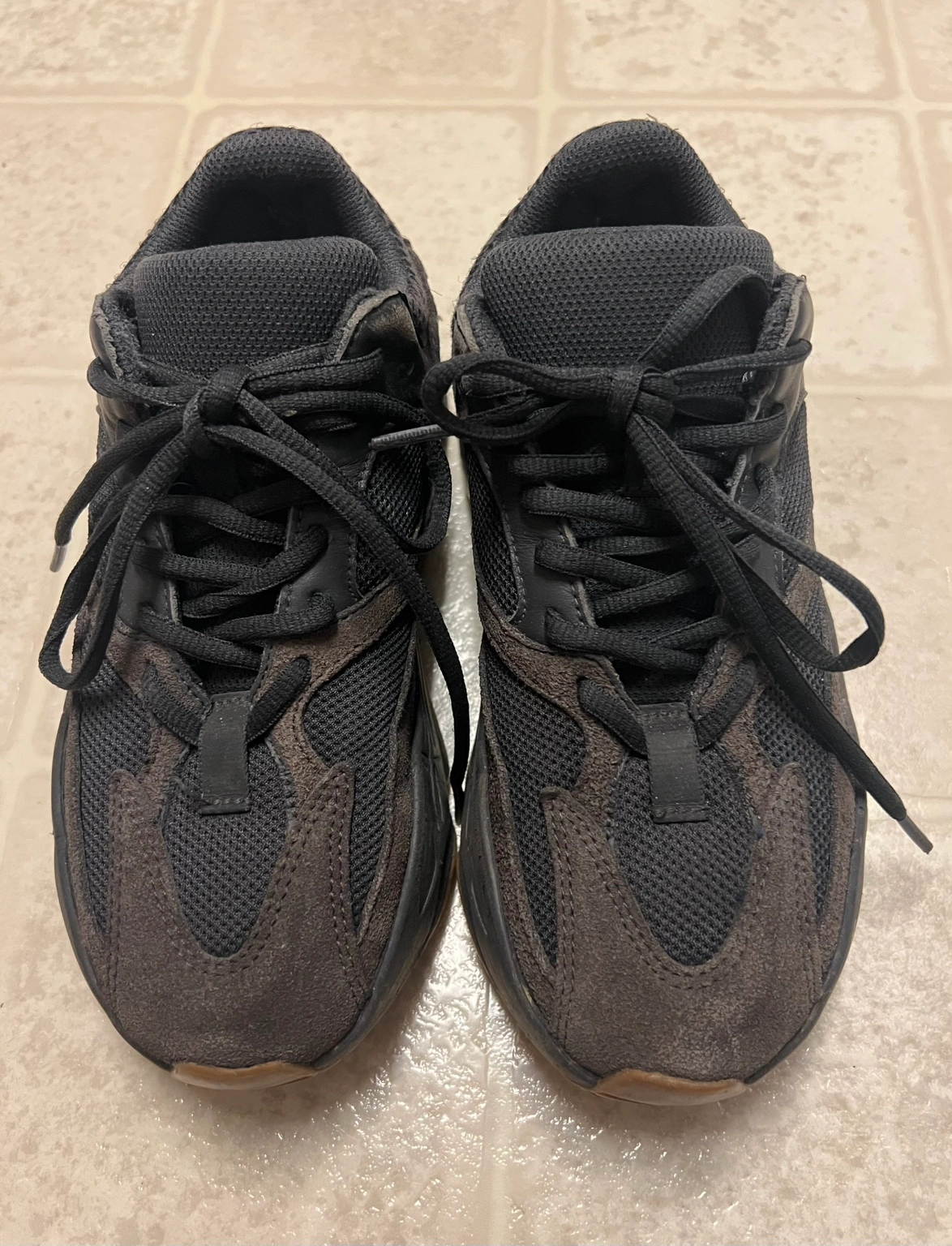Adidas Yeezy Boost 700 "Utility Black" sneaker Monochrome upper of black mesh, suede, and leather overlays with a gum rubber outsole Size 5.5 Well worn, still has a lot of life, in decent shape Moving Sale Take as is