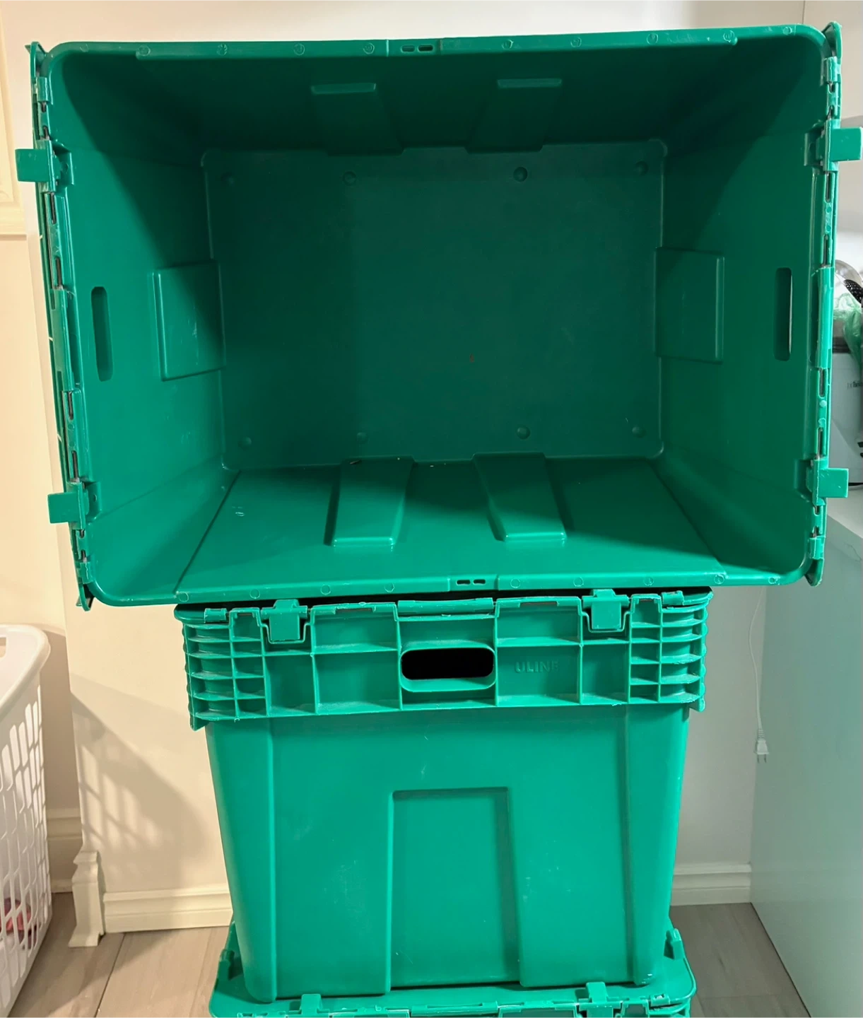 Selling 6 green Uline moving boxes. They're great for organizing and moving your belongings. They are very functional and durable for all your storage needs! $40 each