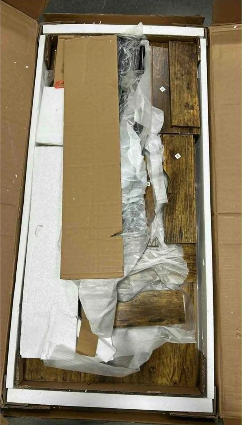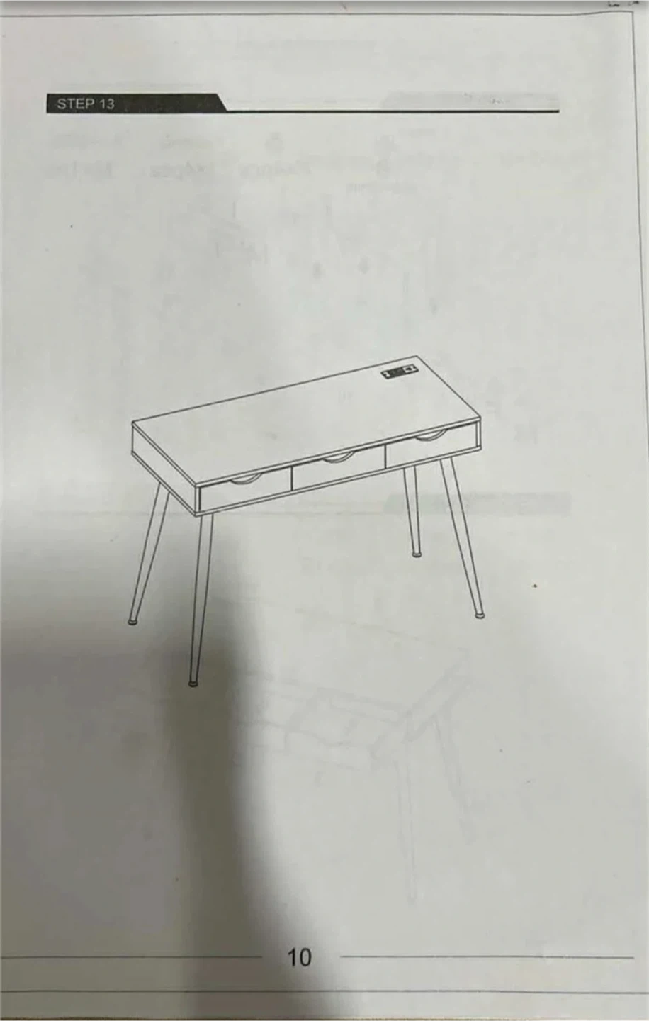 Selling a wood desk with drawers. It features a sleek design with three drawers for storage. The desk is new, still in the box and comes with all the original components and the box