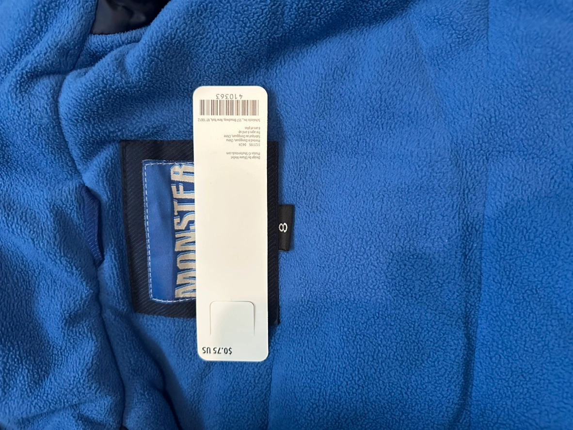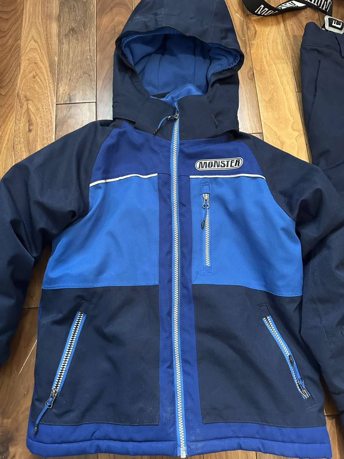 Selling a Monster snowsuit in size 8! The set includes a jacket and pants with suspenders. Great for keeping your little one warm and dry during winter activities