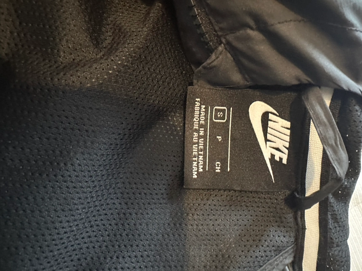 Selling a Nike windbreaker jacket in black. It's a size small and in great condition. Perfect for layering or wearing on its own!