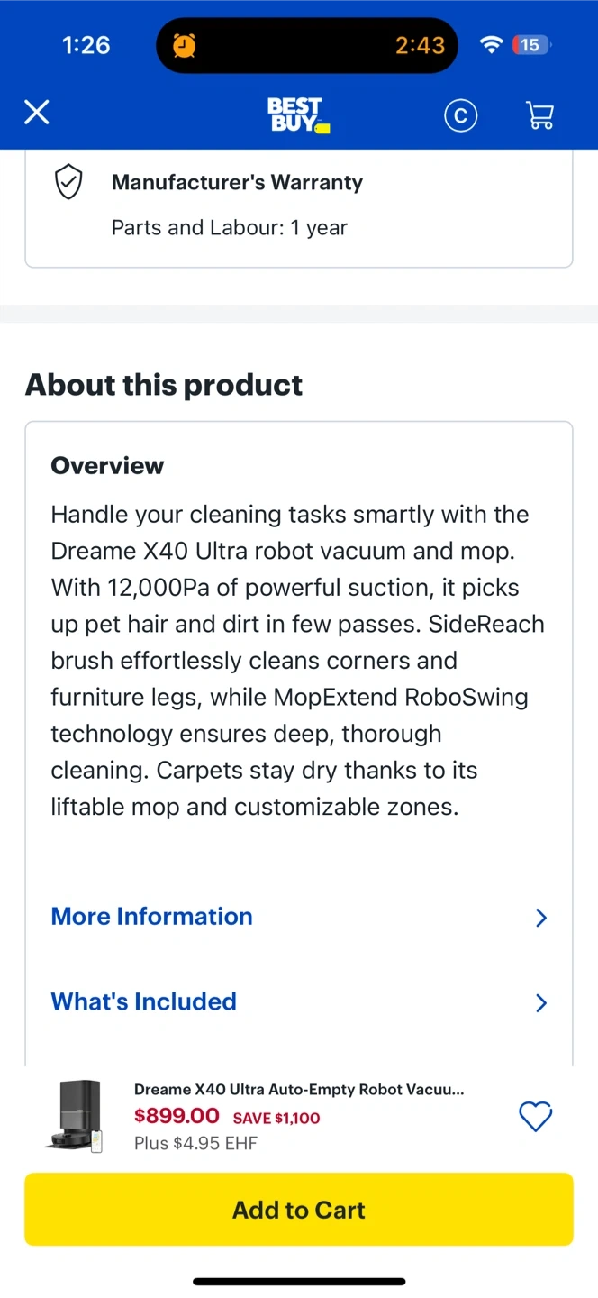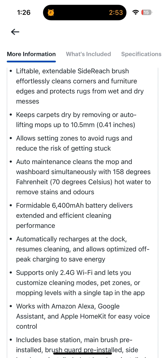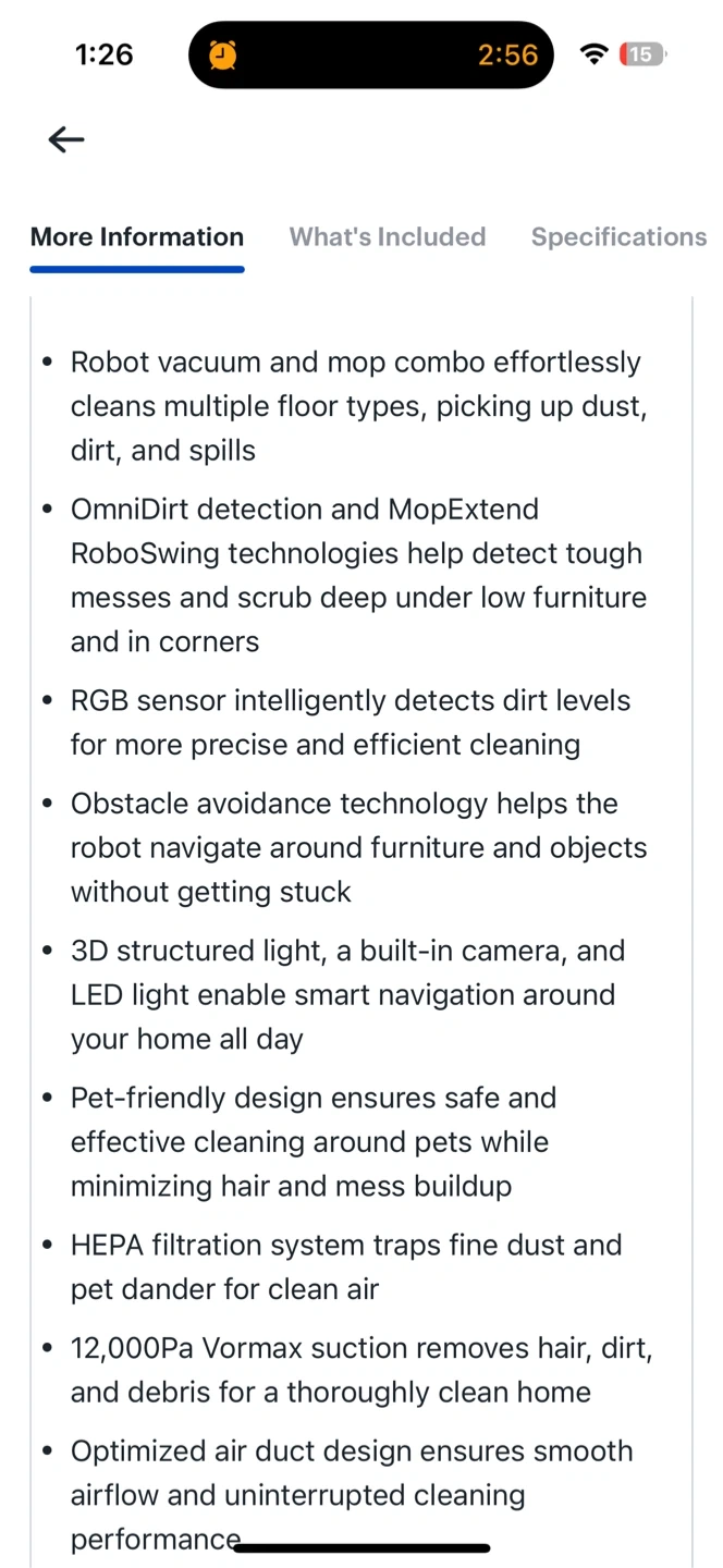 - OmniDirt detection and MopExtend RoboSwing technologies help detect tough messes and scrub deep under low furniture and in corners