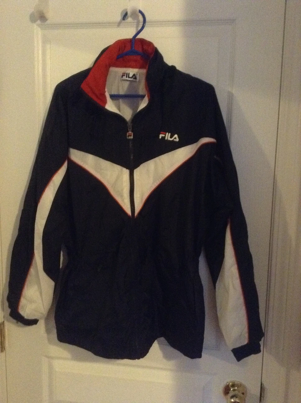 Fila light jacket with hoodie with a tag is new, great condition and untouched. It is too big for me. It is a woman's size L .