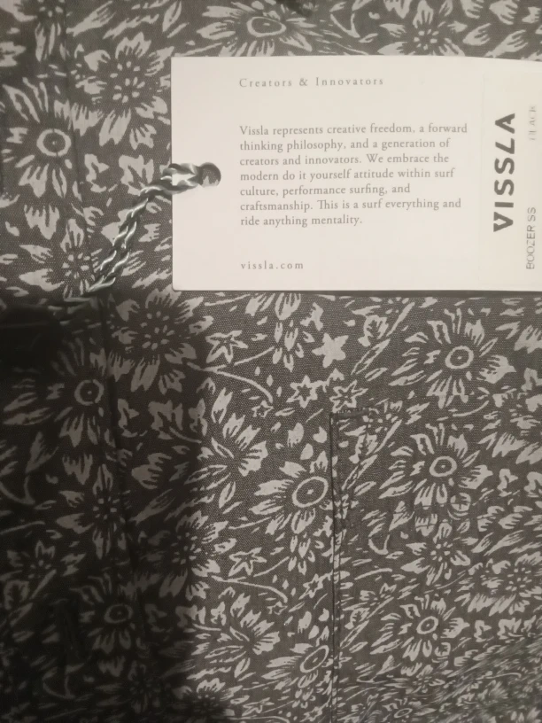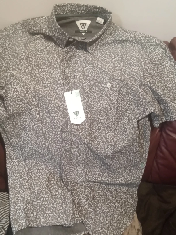 Brand new Vissla shirt made with recycled paper, with a cool floral pattern,Surf Style! It still has the tags on it. Perfect for adding a bit of style to your wardrobe.