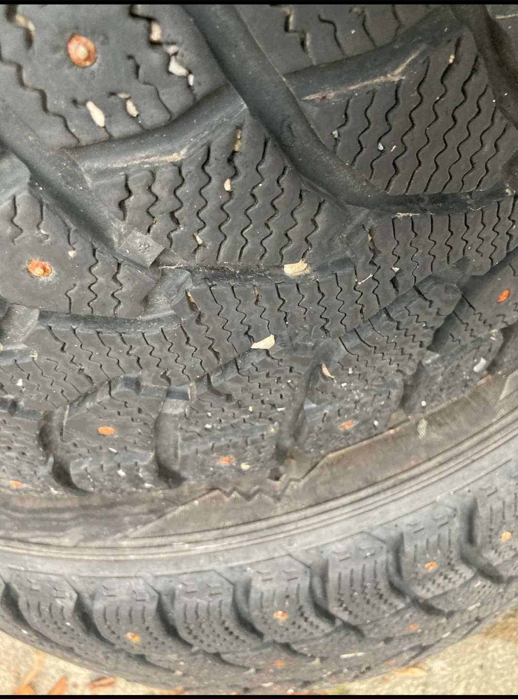 Good shape - only one winter and I got a new car they didn’t fit! Eager to have them gone so I can buy new ones! Also have two other sets I’ll photograph for anyone interested! (And if someone wants all 3 sets, I’d sell the lot for - includes f150 tires used 2 winters - $700 OBO)
