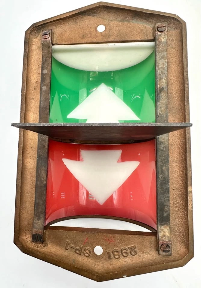 Serious collectors, here’s a chance to own a genuine architectural artifact from the former Hudson’s Bay Company store in downtown Hamilton, one of the city’s most iconic retail buildings for nearly a century. This vintage elevator indicator light cover once sat above the elevator doors, displaying the classic red “up” and green “down” arrows. Items like this rarely surface, especially with confirmed provenance from a major Canadian department store.