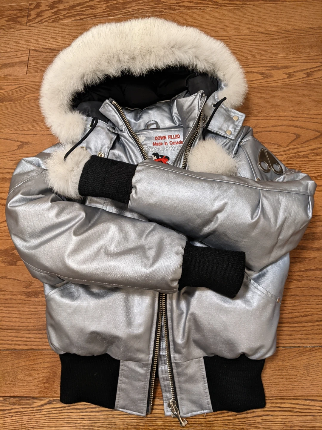 Selling a Moose Knuckles down filled jacket in size small.