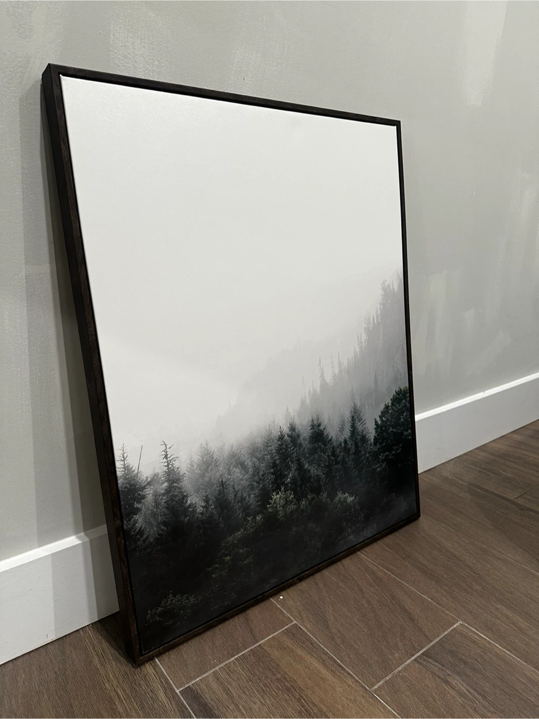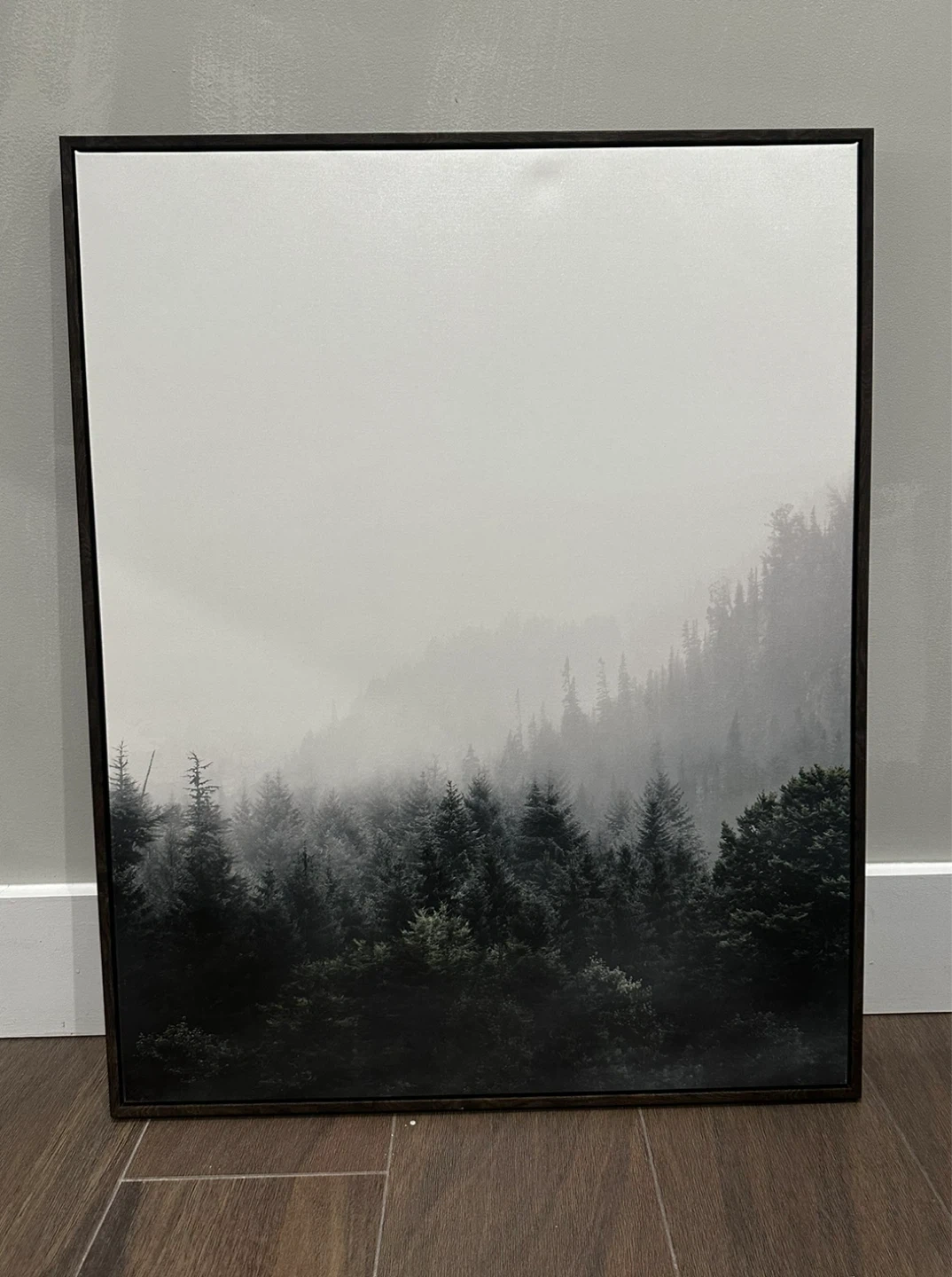 Selling a framed print featuring a misty forest scene. Dimensions approximately 24 inches x 30 inches. It's in great condition and would look lovely in any room!