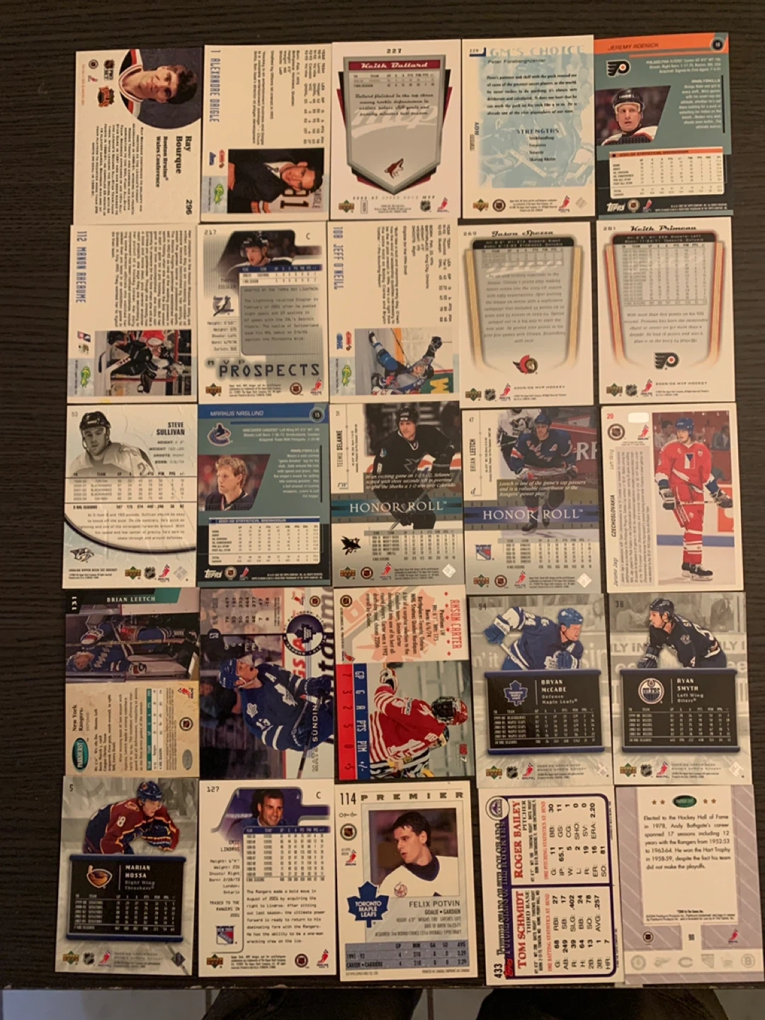 Selling a collection of assorted hockey trading cards. Great for collectors or anyone interested in hockey memorabilia! The cards feature various players and teams.