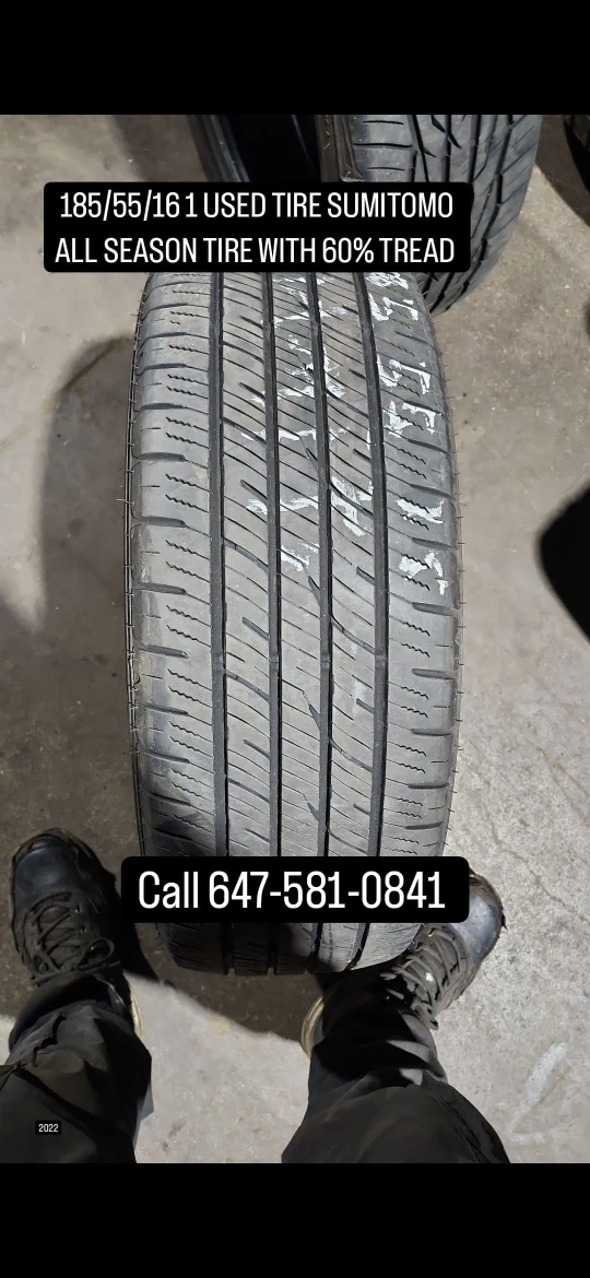 Selling a used Sumitomo all-season tire with dimensions 185/55/16. It's got about 60% tread left, so it's still got plenty of life in it!