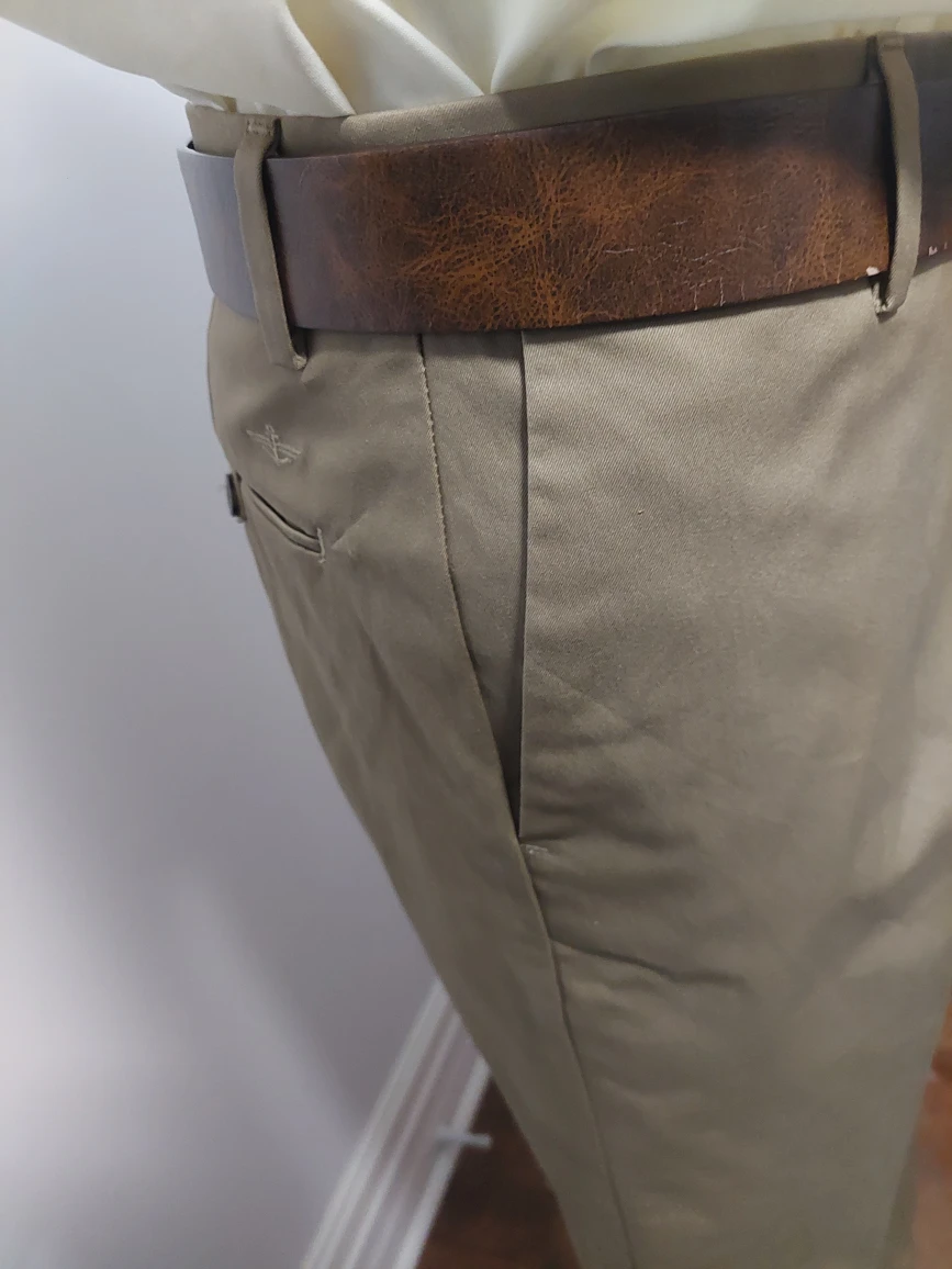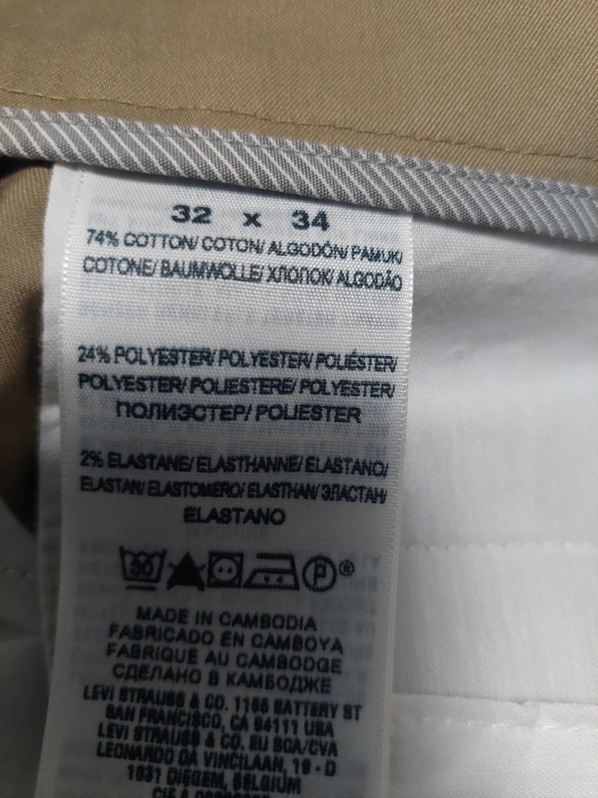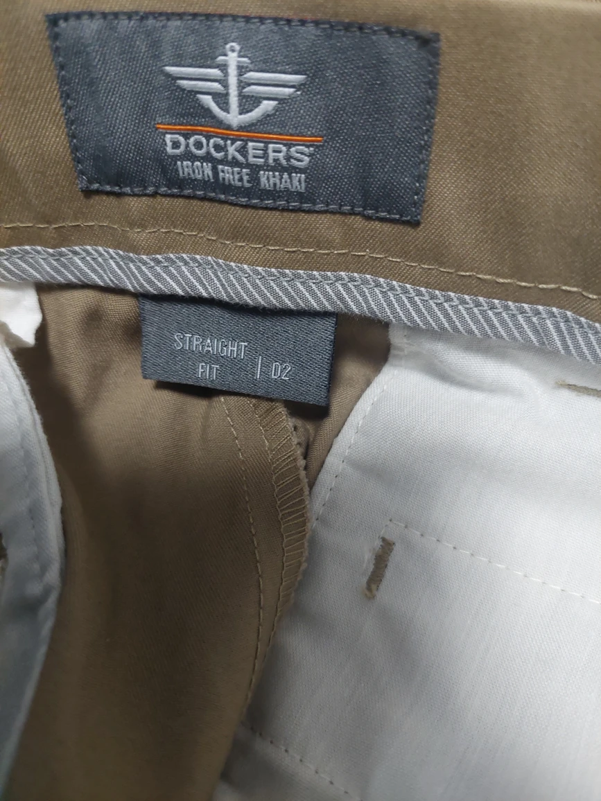 Dockers Iron Free Khaki pants in size 32x34. These straight fit D2 pants are made from 74% cotton, 24% polyester, and 2% elastane.