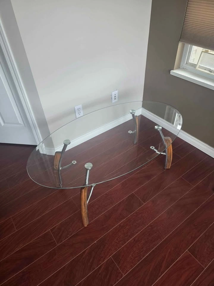 Buy & SellGlass oval coffee tableGlass oval coffee table$80Glass coffee table with metal legs and wood. Oval shape 46" length x 26" wide.WHERE TO MEETCheck LocationView MapSELLERScott HMary Hill50 reviews0 chats·0 favorites·8 views