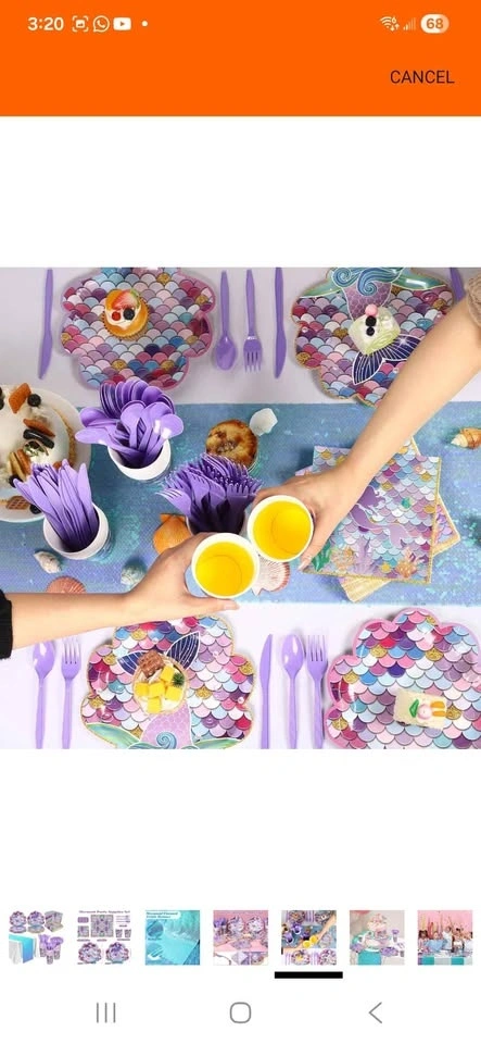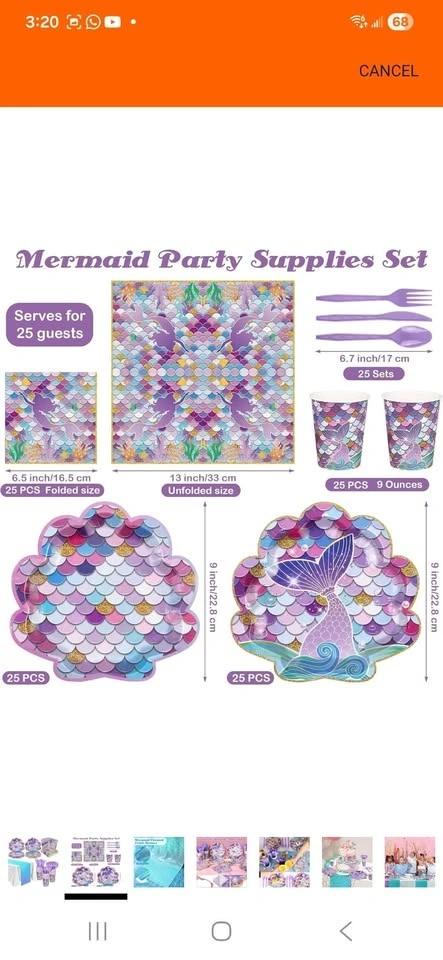 Dive into the party with our brand new mermaid party supplies set for 25 guests! You've got everything you need: plates, napkins, cups, cutlery, and a table runner, all with a fin-tastic purple and blue mermaid scales design. Perfect for themed Parties