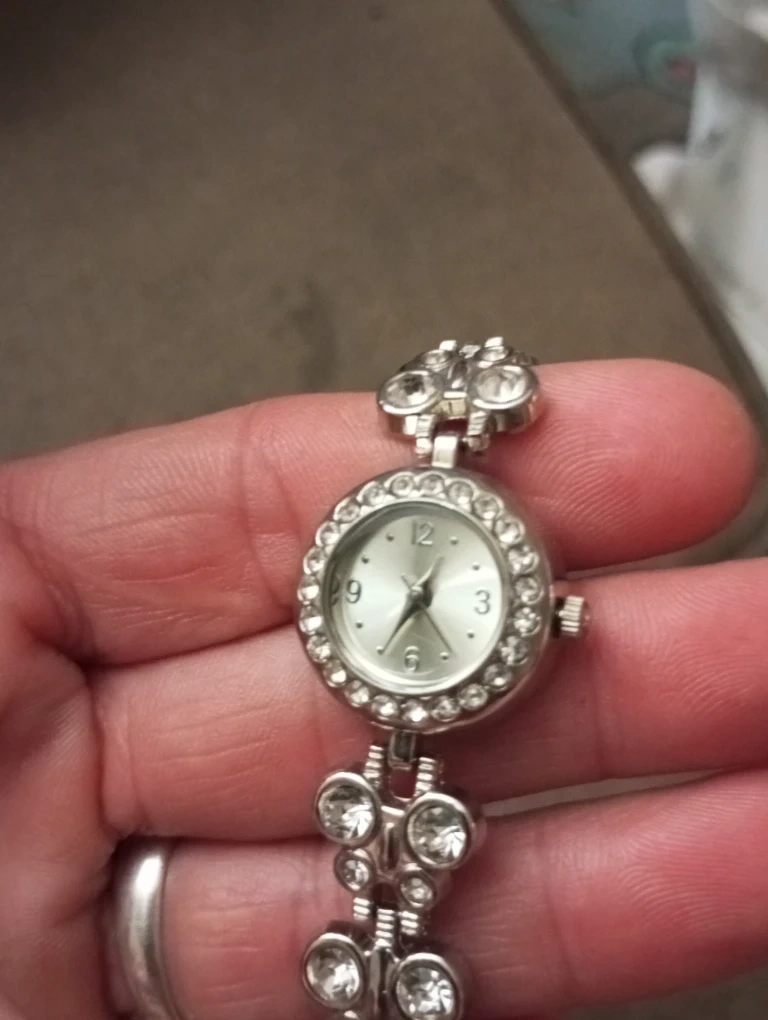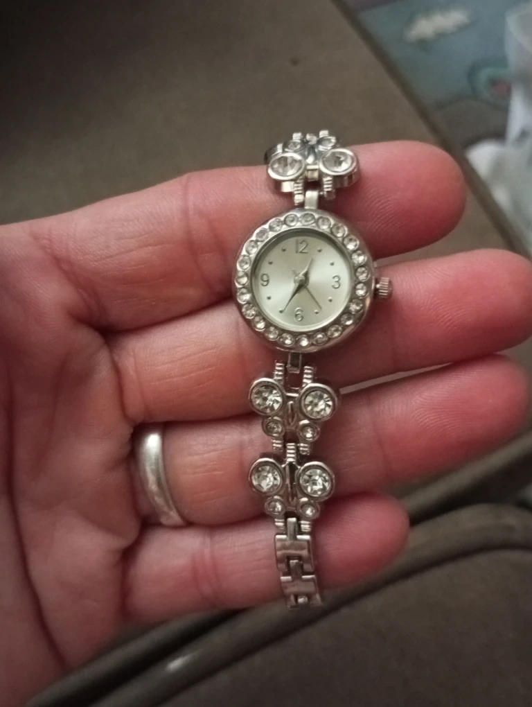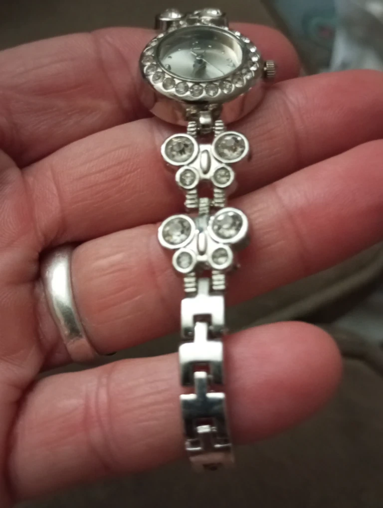 Selling a cute silver-tone watch with rhinestones and butterfly accents!