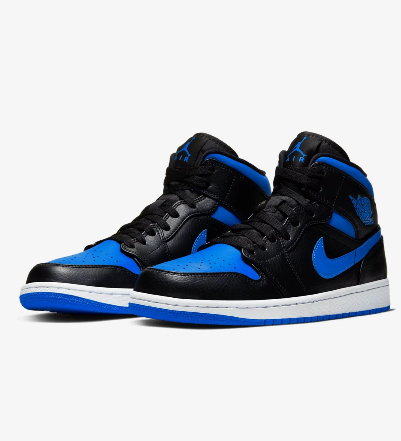 Air Jordan 1 Mid sneakers in a striking royal blue and black colourway.