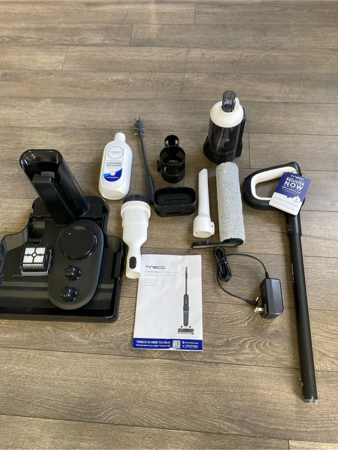 Selling a Tineco Floor One S3 cordless wet dry vacuum cleaner. It's in great condition and comes with all the components you see in the pictures, including the cleaning solution and attachments. Perfect for keeping your floors clean and tidy!