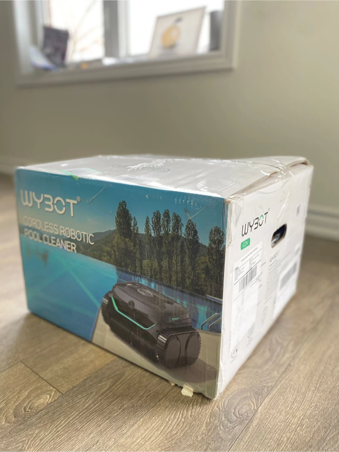 Selling a Wybot C2V cordless robotic pool cleaner. It features smart navigation and comes with its original box. It's designed to clean and store easily. Included are the instructions and any original components that came with the box. This is perfect for keeping your pool sparkling clean this summer