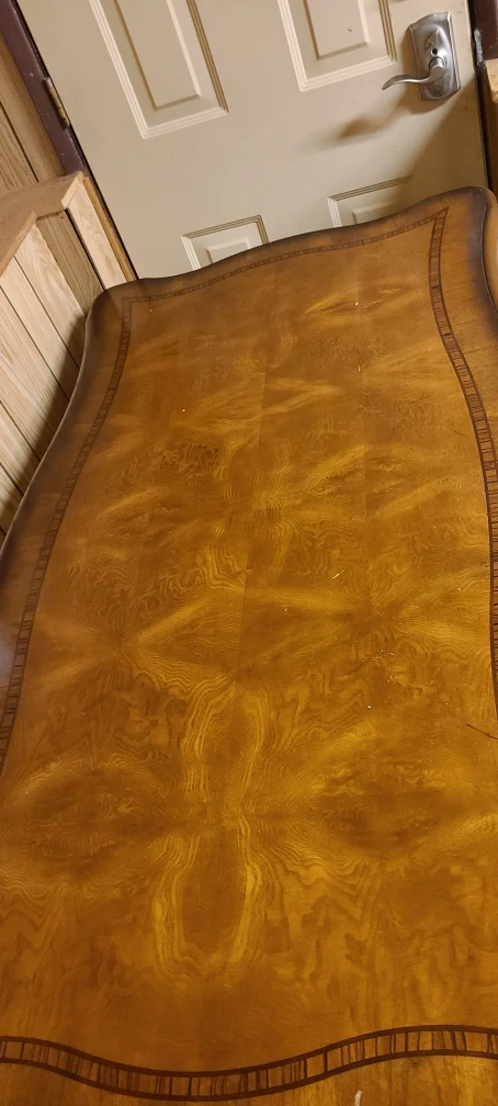 Here's a beautiful vintage-style wooden desk with a unique design! It would look great in any home office or study. It's in good condition and ready for a new owner