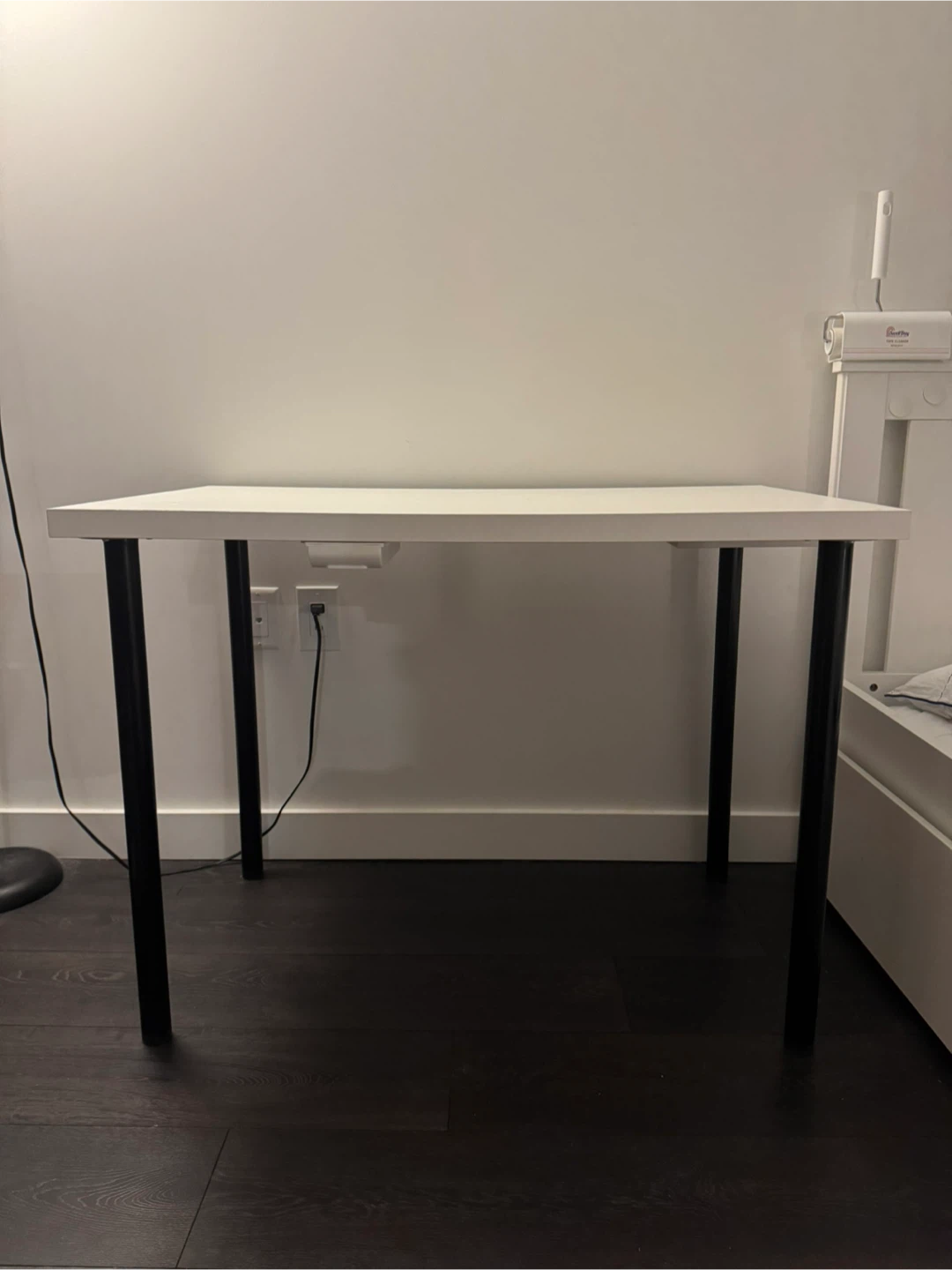 The product is LINNMON / OLOV from IKEA. The tabletop has some damage but has no functional problems. The legs are adjustable. Must be picked up on or before November 30.