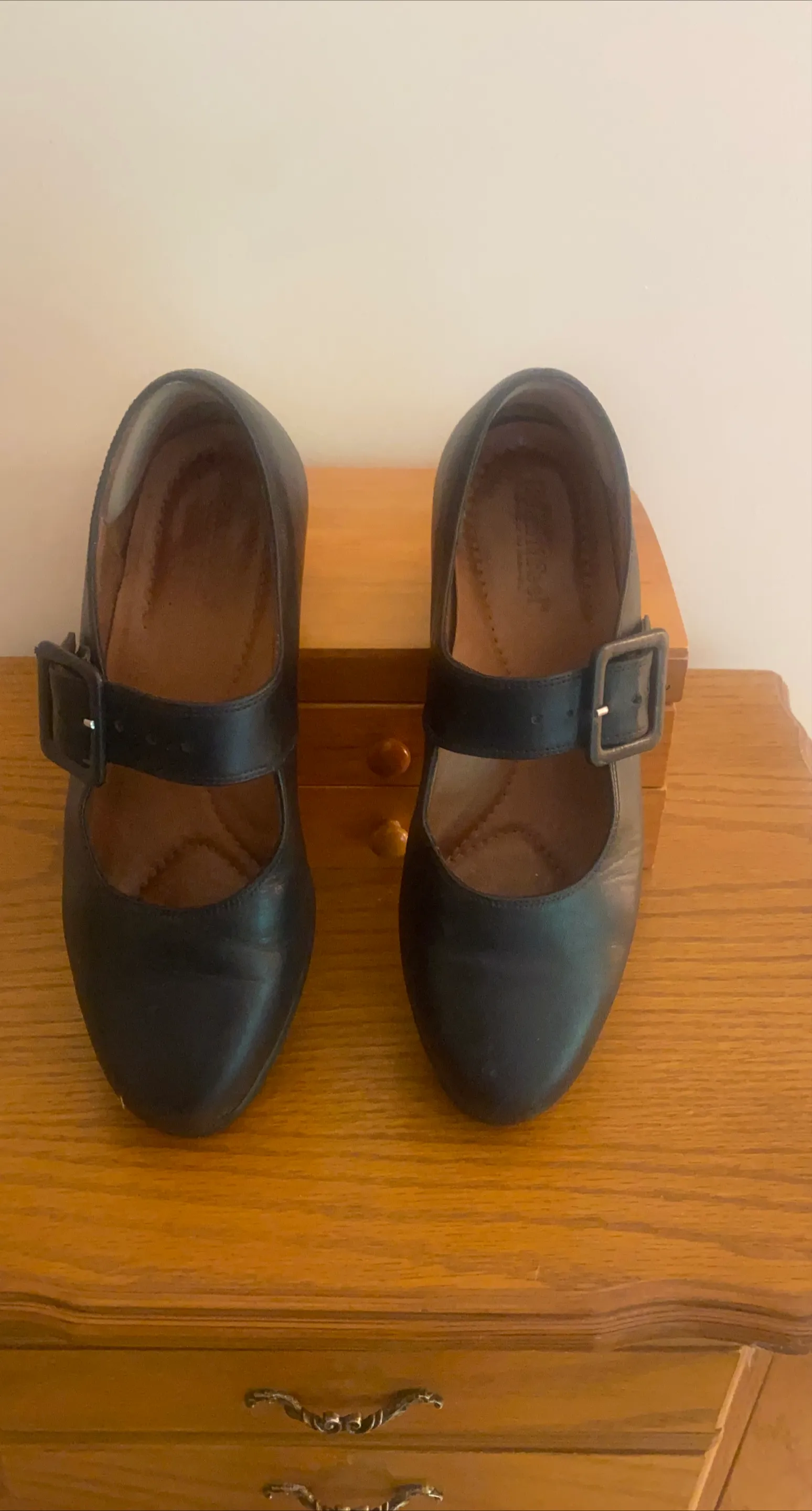 These Earth Spirit Mary Janes are a classic and comfortable choice for everyday wear. They feature a black leather upper with a buckle strap. They're in good condition and ready for a new home!