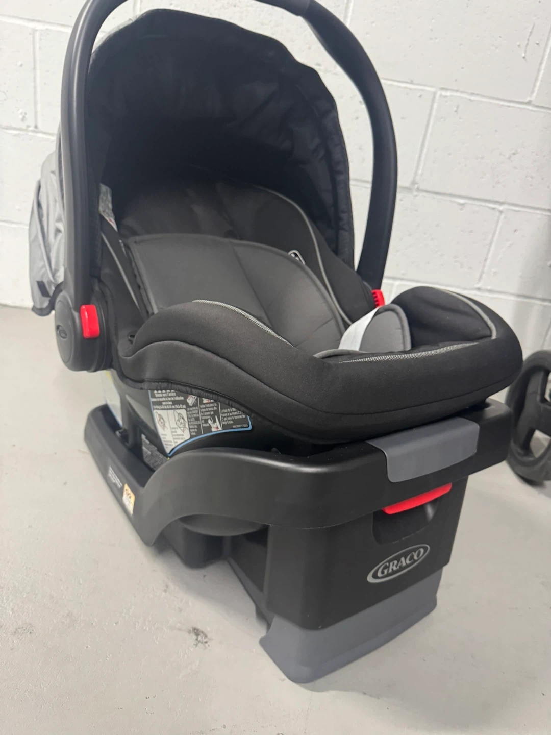 Selling a Graco Modes Travel System, which includes both the stroller and the infant car seat. It's in great condition and ready for a new family! The stroller has a parent tray with cup holders and a large storage basket underneath. The car seat also comes with a base for easy installation in your vehicle. Great for taking your little one on walks or errands around town!