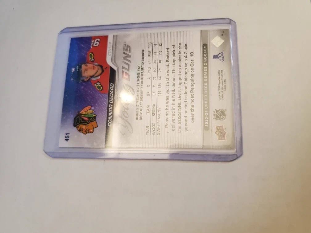 Chicago Blackhawks Super Star Connor Bedards official young guns rookie card.