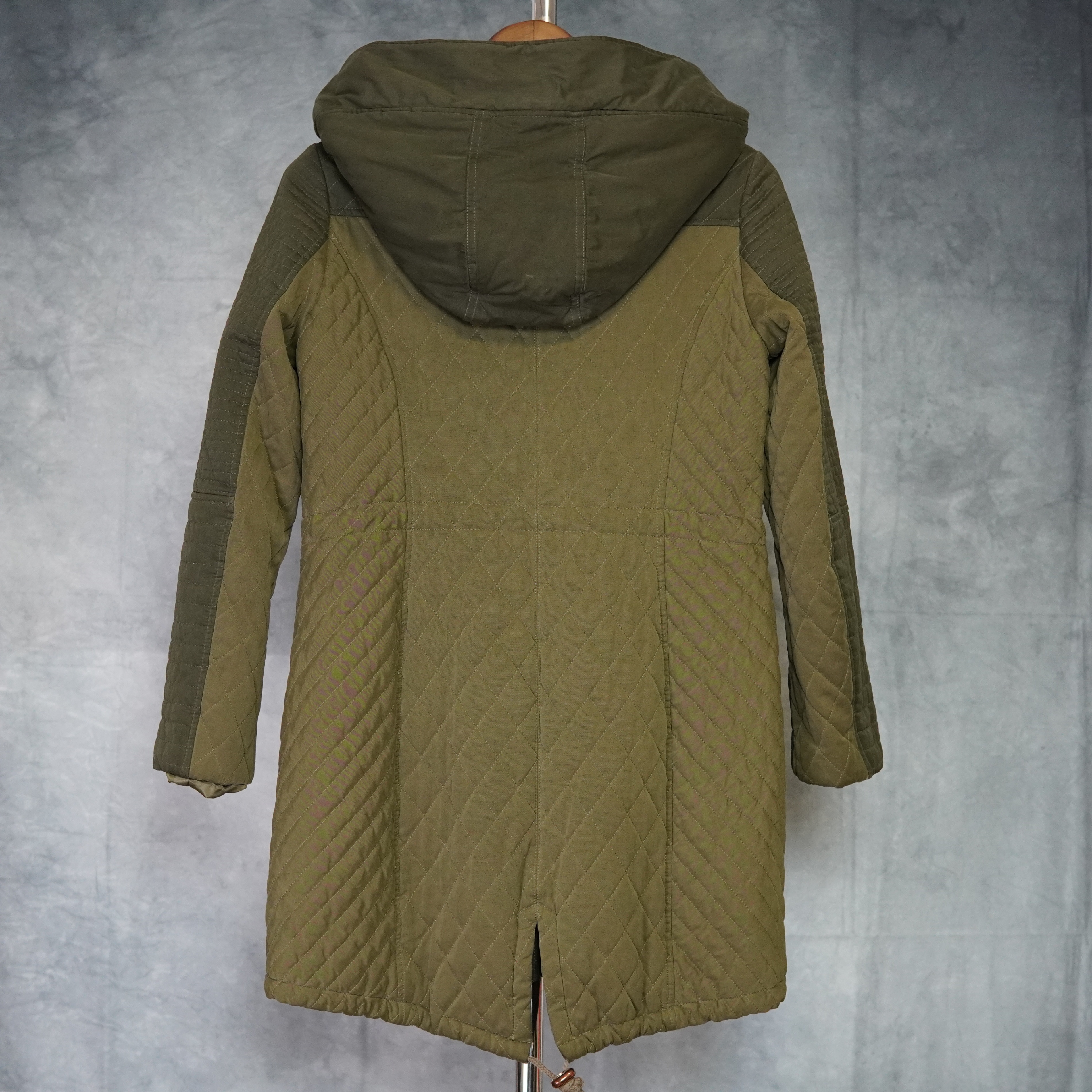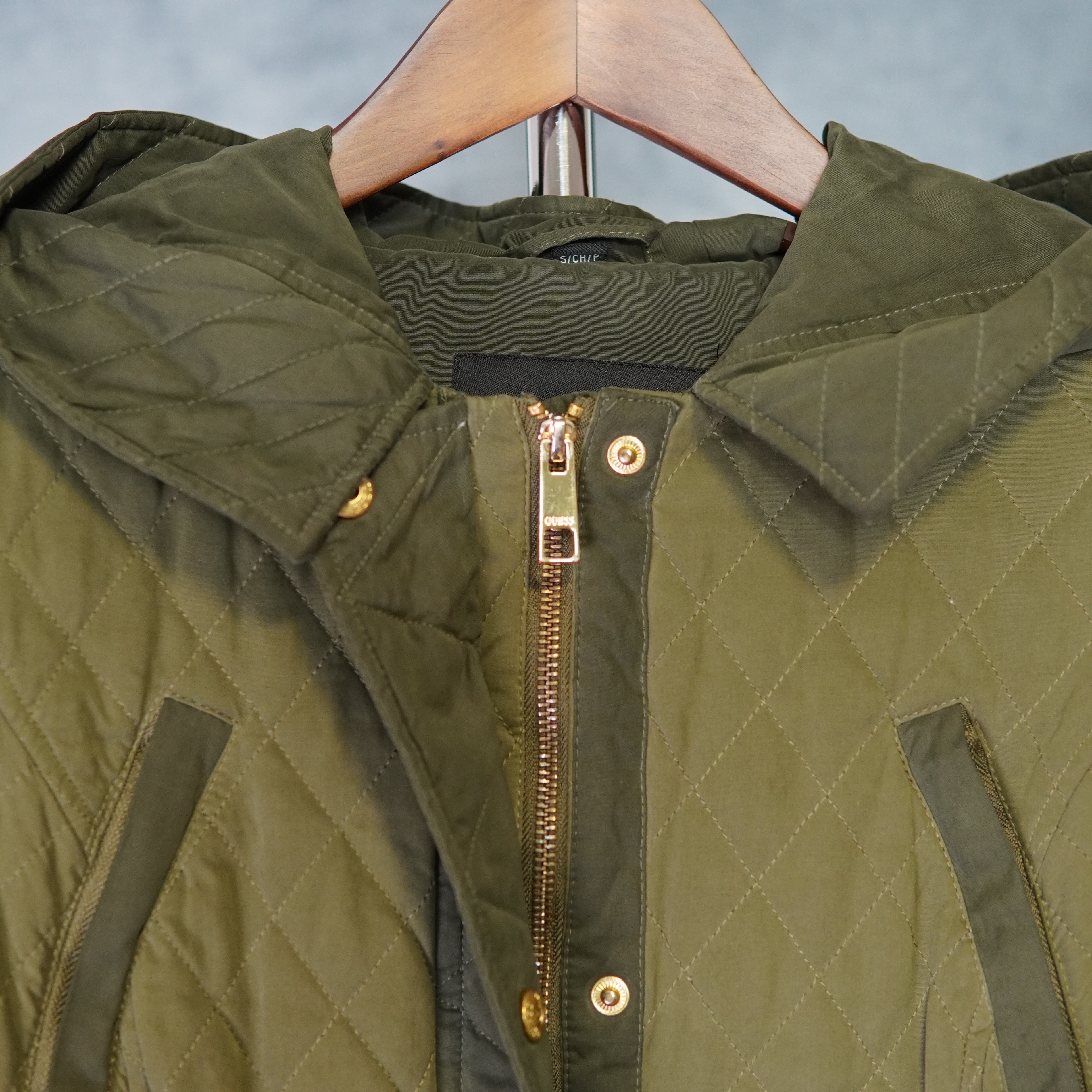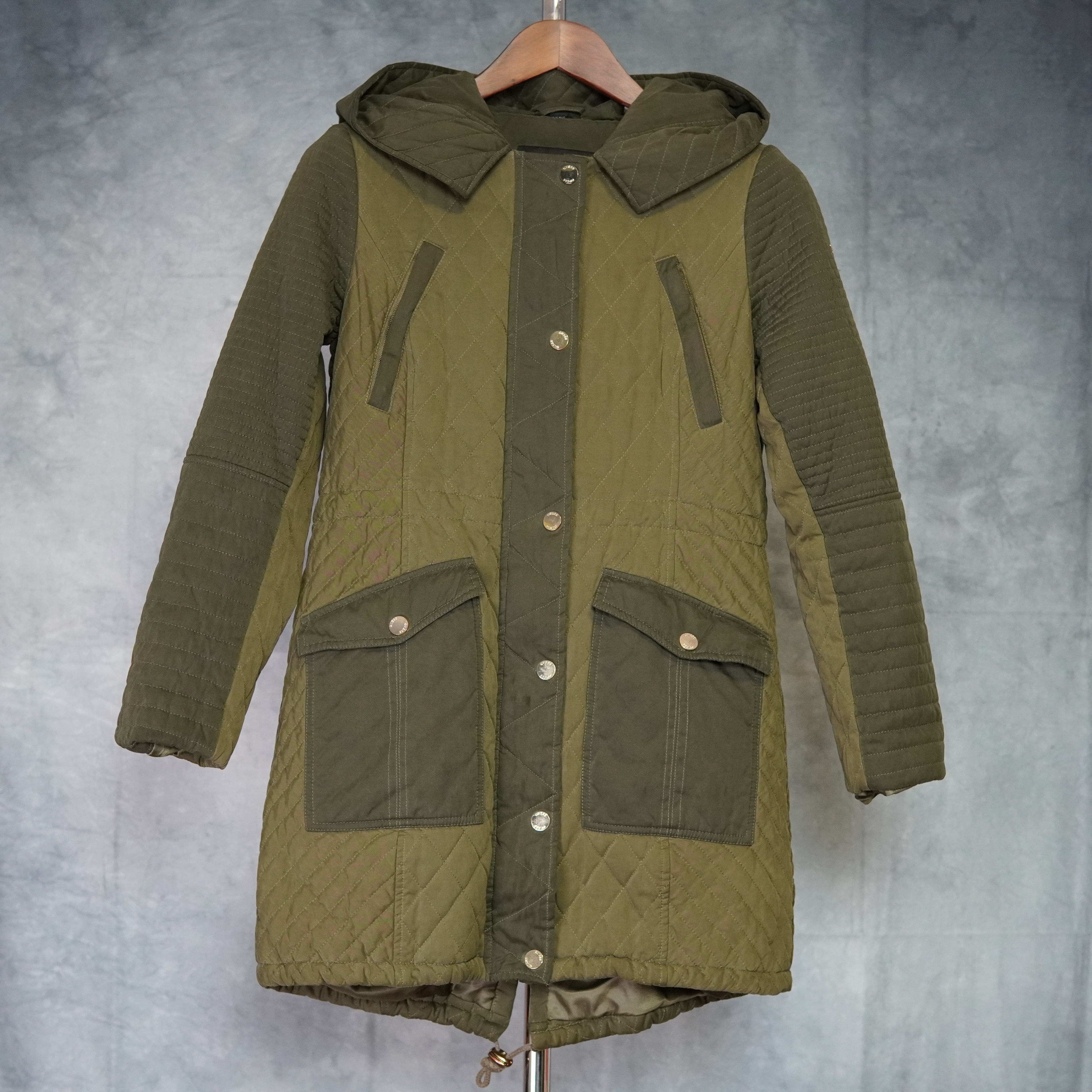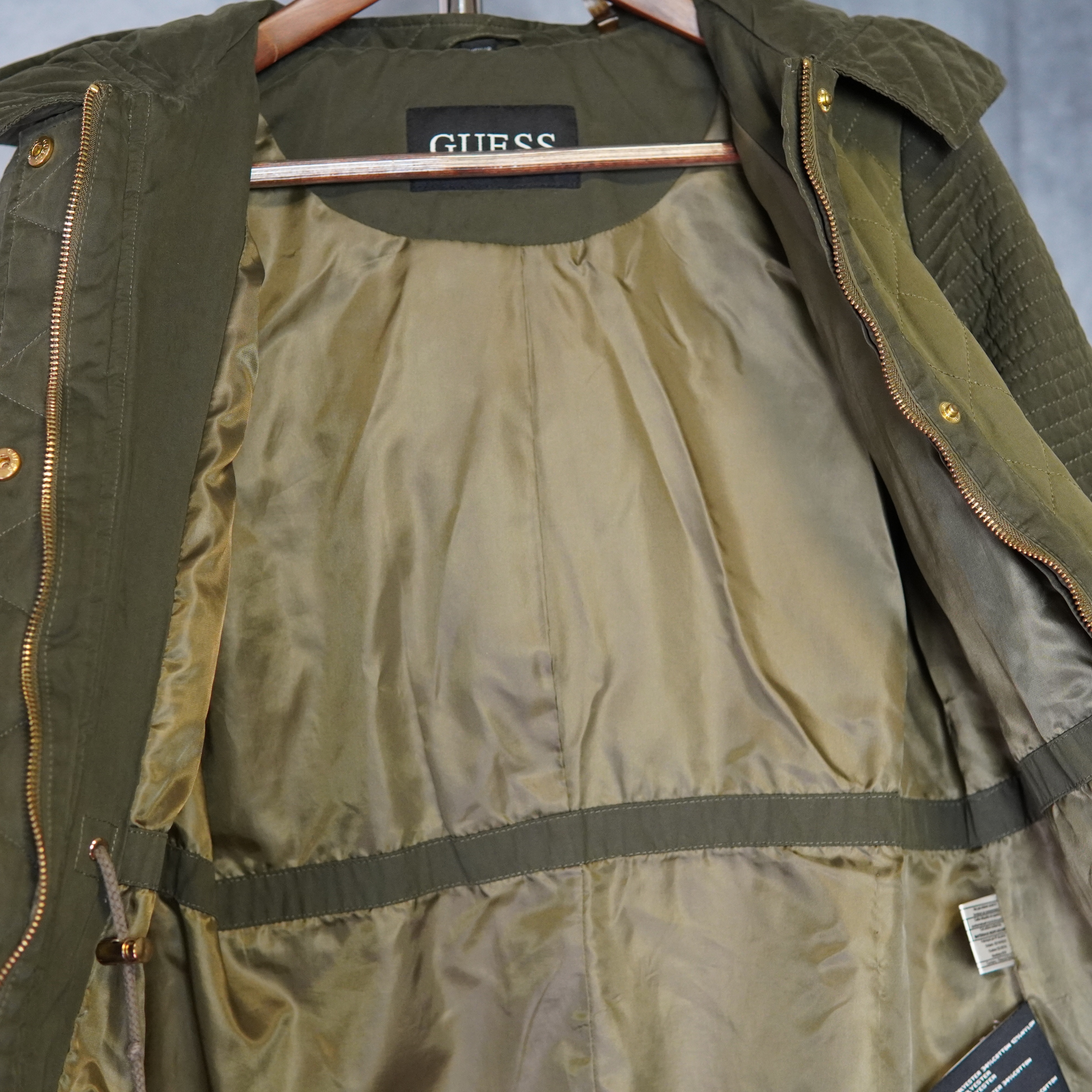 GUESS Women’s Hooded Parka – Two-Tone Green with Gold Accents