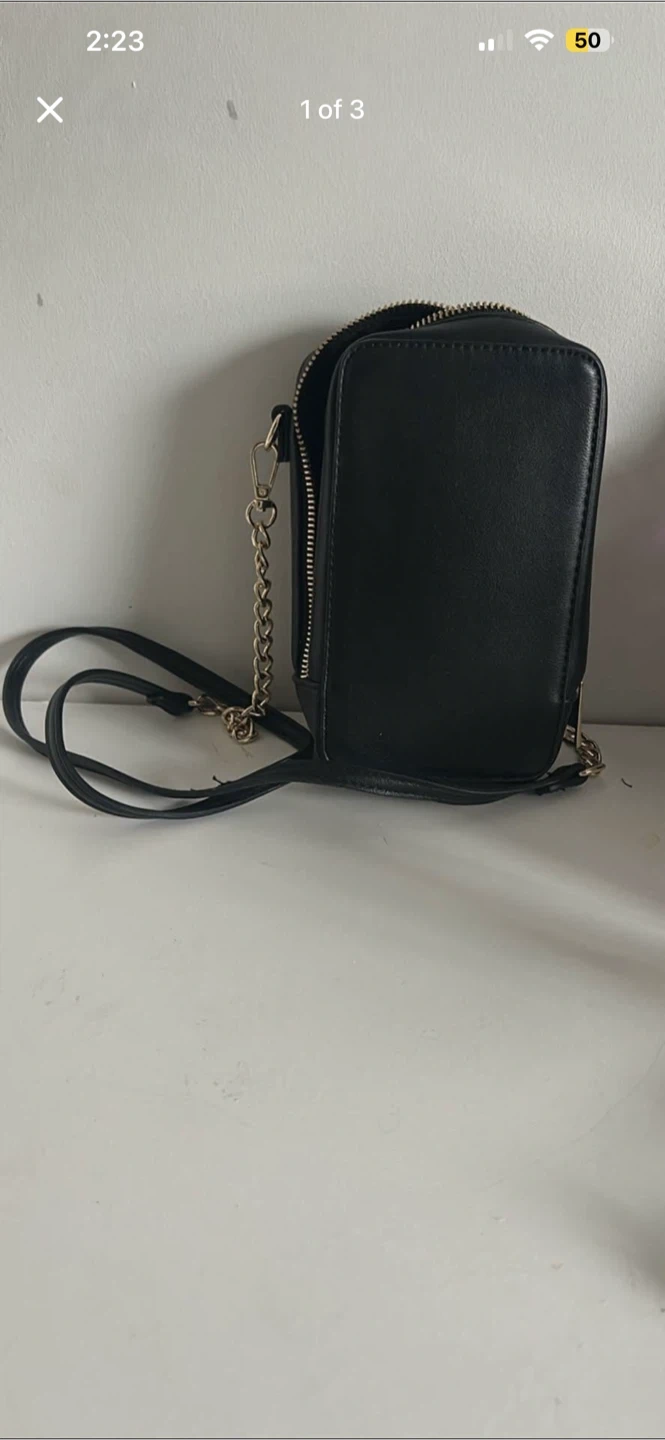 Buy & SellBlack Crossbody Bag with Gold ChainBlack Crossbody Bag with Gold Chain$8Selling a cute black crossbody bag! It. It's in great condition and never usedConditionNewWHERE TO MEETCoquitlam centerView MapSELLERverifiedAmandaCoquitlam Centre600 reviews0 chats·0 favorites·3 views