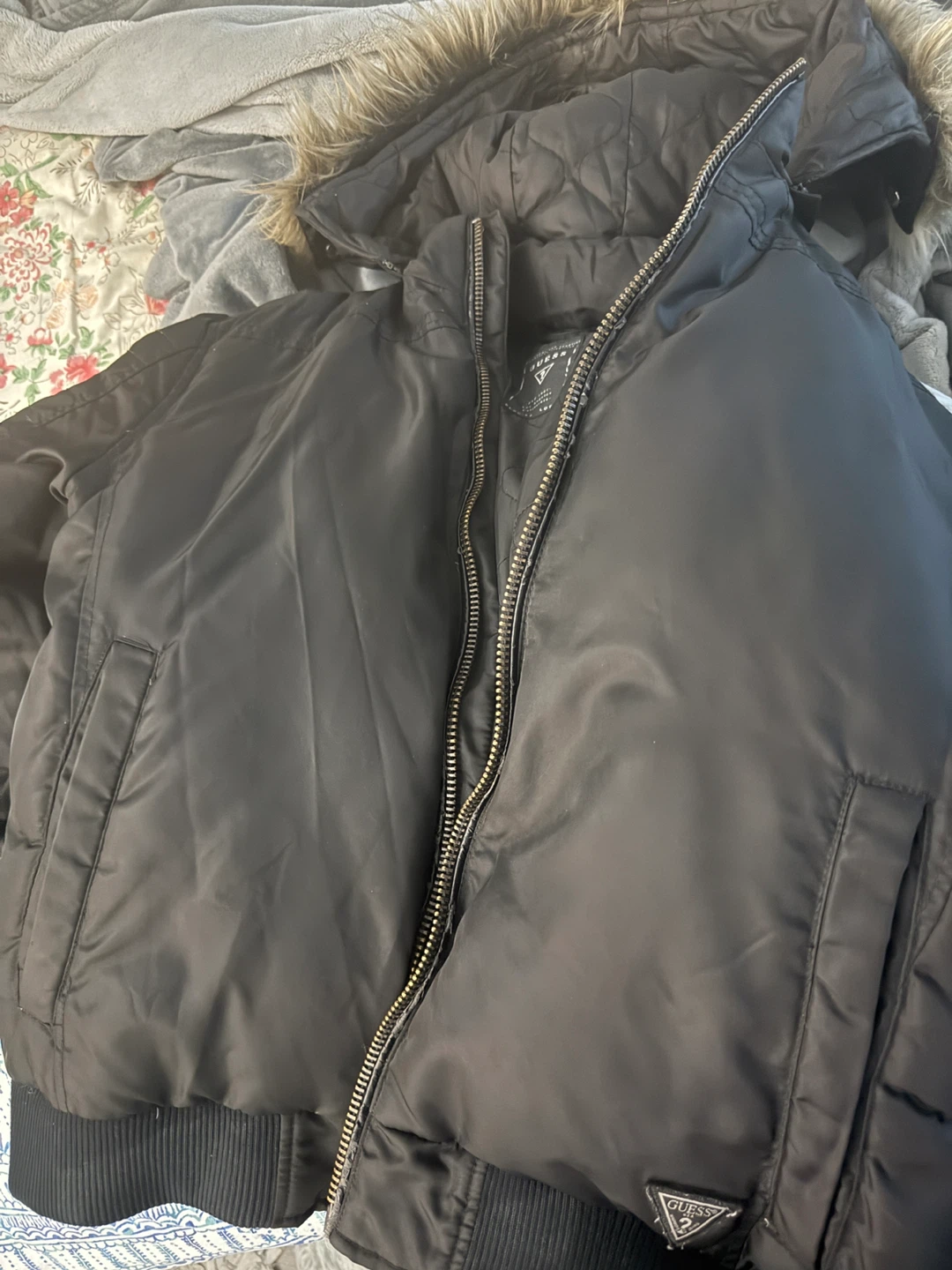 Selling a Guess black winter jacket! It has a fur hood, perfect for keeping warm during those cold Canadian winters. The jacket is in great condition and ready for a new owner!