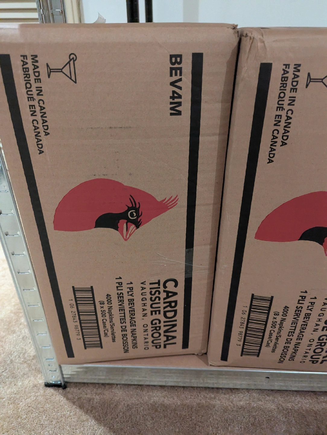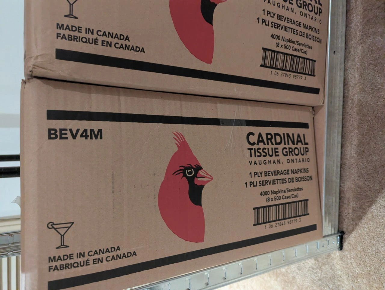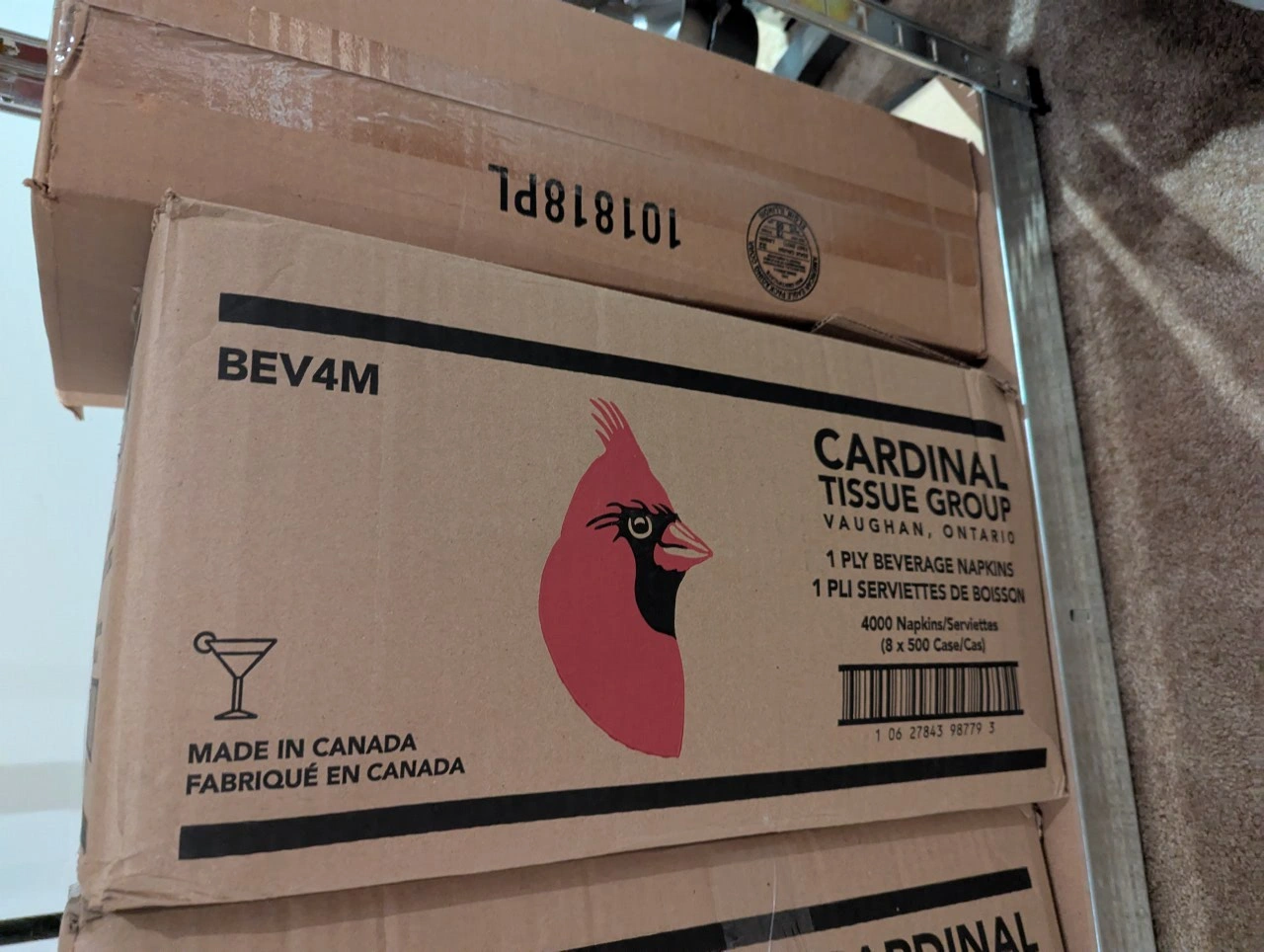Selling 2 boxes of Cardinal Tissue Group white beverage napkins! Each box contains 4000 napkins (8 x 500 case). Made in Canada