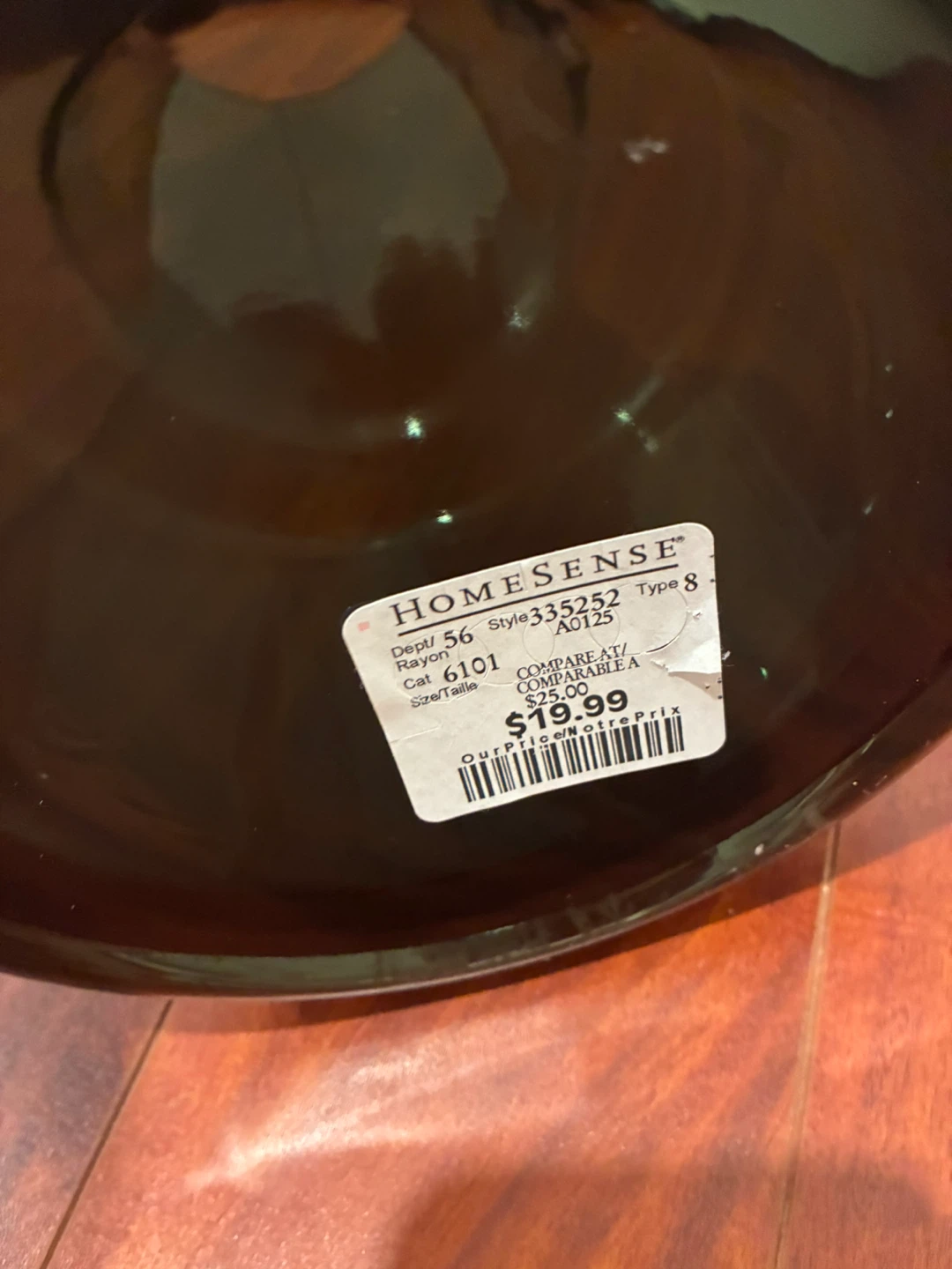 Selling a handmade glass vase from HomeSense! It's in great condition and would look lovely with flowers or as a decorative piece. Originally bought for $19.99. Have a matching bowl for sale as well.